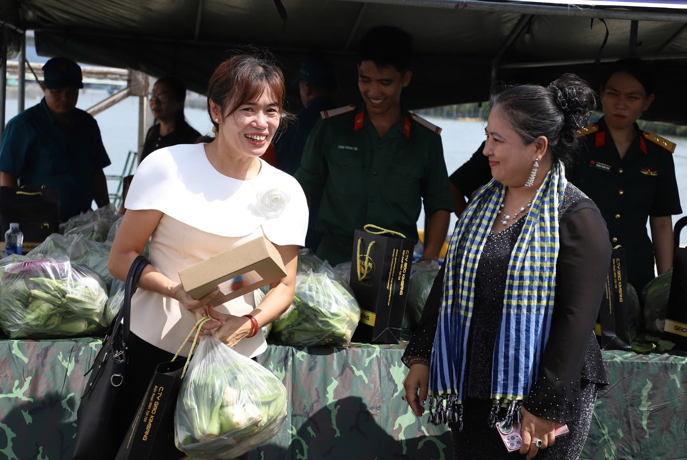 Bà con nhận món quà nghĩa tình từ chương trình.