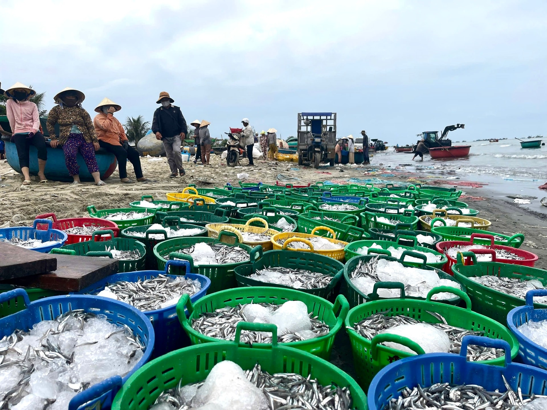 Cá cơm được tập kết tại bờ biển Mũi Né
