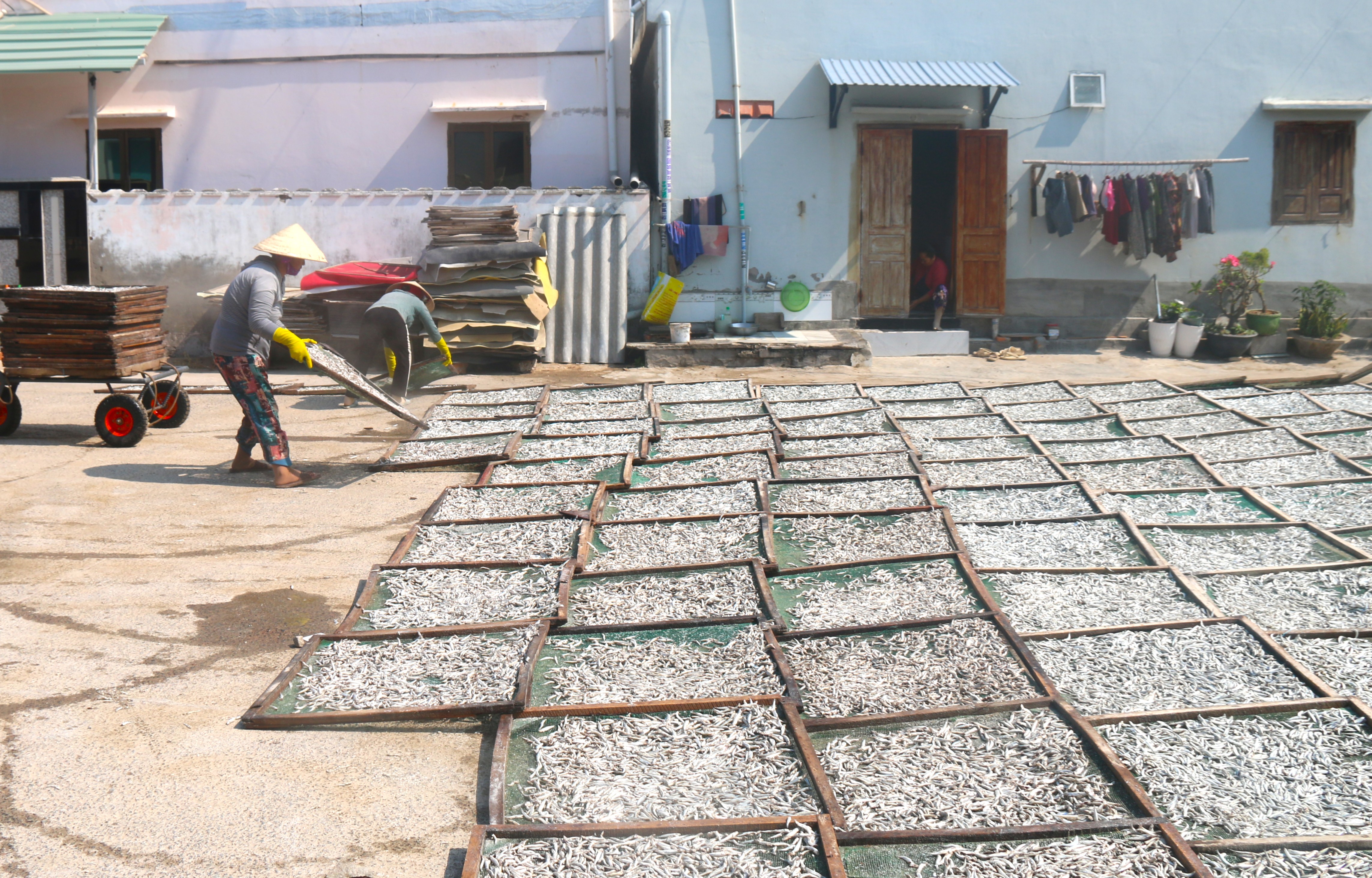 Mùa cá cơm đã mang lại nguồn thu cho ngư dân và tạo việc làm cho nhiều lao động nhàn rỗi tại địa phương. Ngay trên bãi biển, hàng chục phụ nữ, người lớn tuổi tham gia khiêng cá, phân loại, đóng sọt. Công việc tuy nặng nhọc nhưng thu nhập khá ổn định.