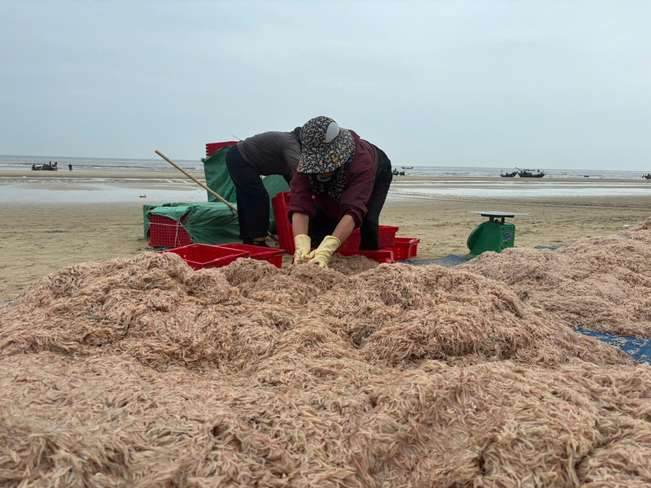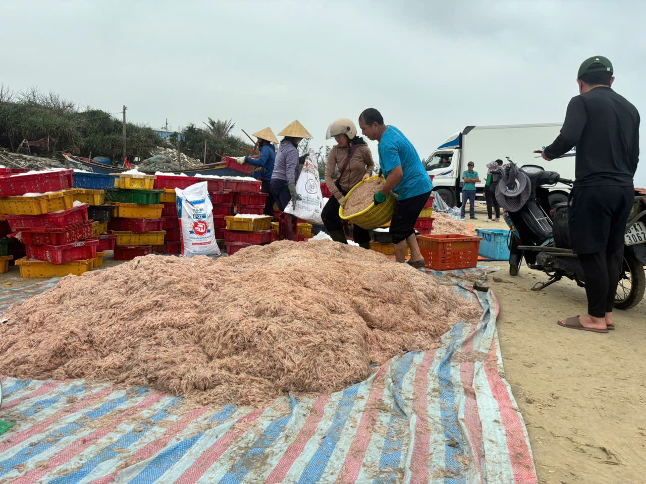 Hàng tấn ruốc biển được ngư dân Hà Tĩnh đánh bắt đưa vào bờ tiêu thụ