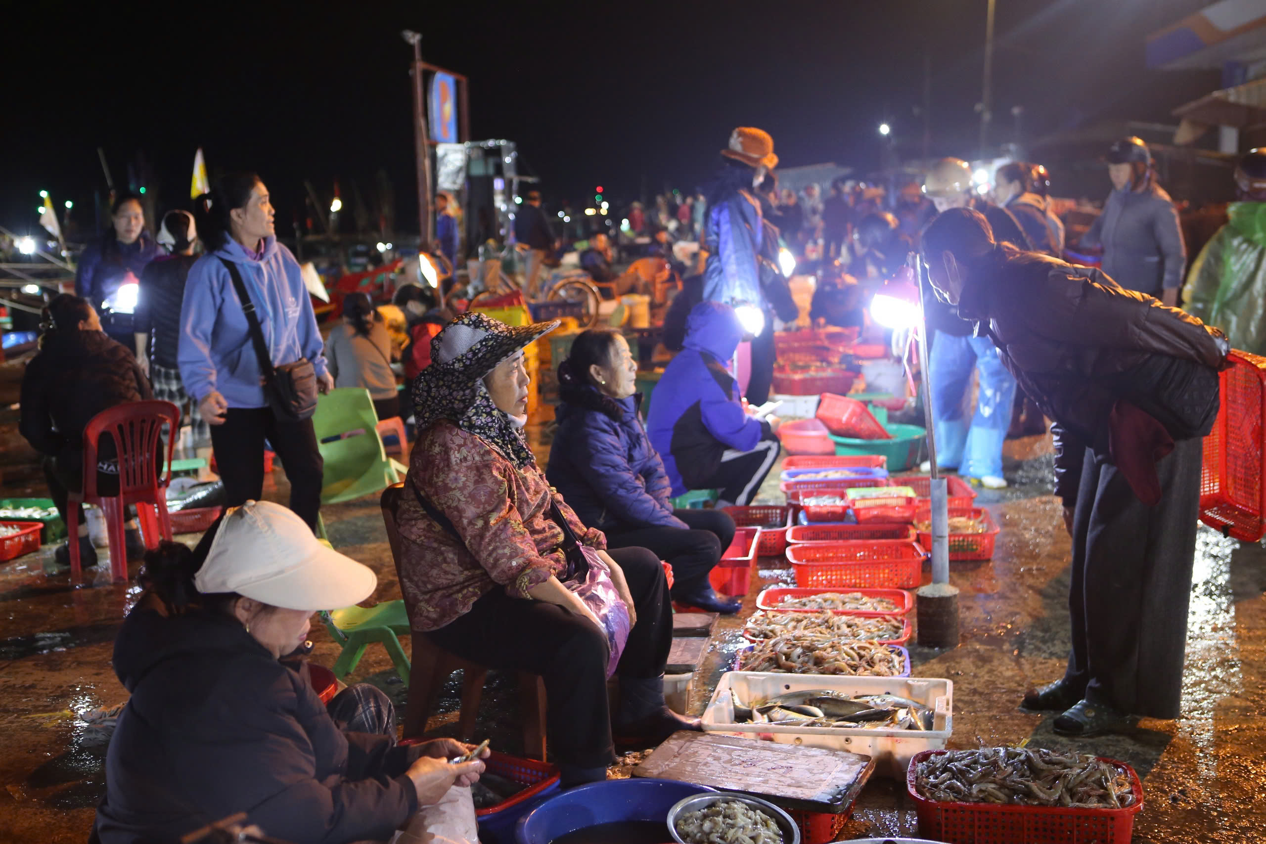 Khoảng 4h sáng, các tàu thuyền cập cảng, trong khi các tiểu thương có mặt từ sớm để thu mua hải sản. Những loại cá được ngư dân khai thác gồm cá thu, cá nục, cá lường cùng nhiều mặt hàng đặc sản khác, tạo điều kiện cho người dân và thương lái giao dịch sôi động ngay từ đầu ngày.