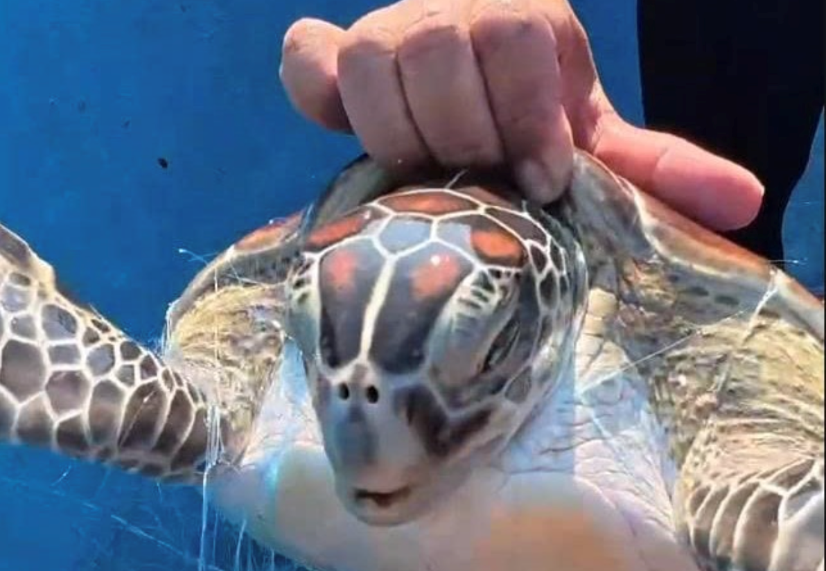 Trước đó, vào ngày 15/4, trong quá trình đánh bắt bằng thúng chai, anh Nguyễn Anh Tươi (xã Liên Hương, tỉnh Lâm Đồng) cùng một số ngư dân phát hiện một cá thể rùa biển mắc lưới tại vùng biển Bình Thạnh, gần bãi tắm chùa Cổ Thạch.