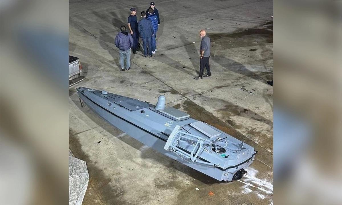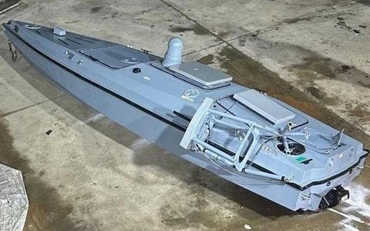 Chiếc xuồng được cho là loại Magura V5 — một mẫu xuồng không người lái (USV) được Ukraine phát triển cho chiến thuật tấn công tự sát hoặc trang bị vũ khí nhẹ, cảm biến, thiết bị truyền dẫn.