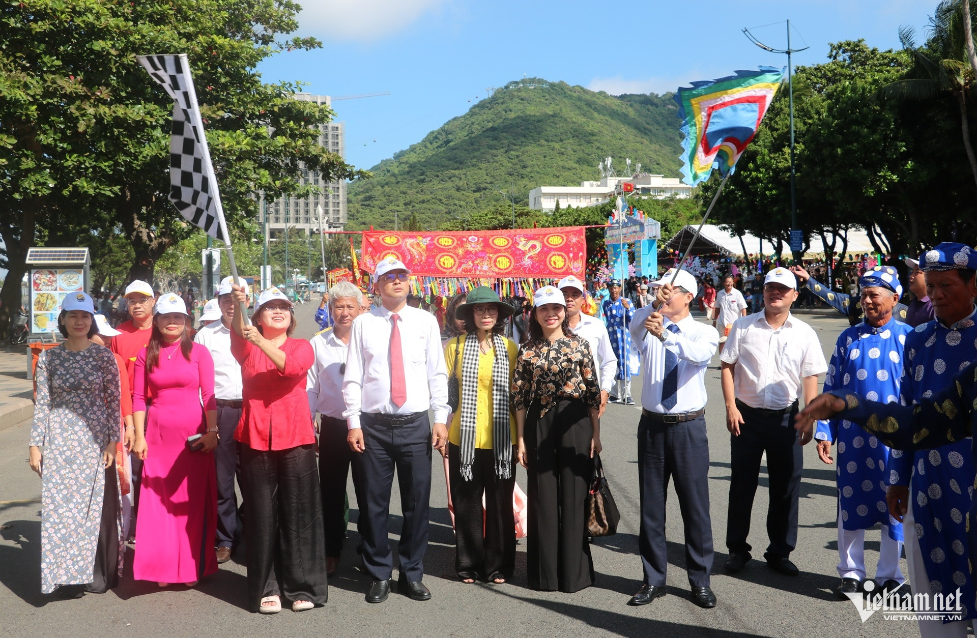 Lãnh đạo Sở Văn hóa thể thao TPHCM và UBND phường Vũng Tàu thực hiện nghi thức khai mạc lễ hội Nghinh Ông Thắng Tam Vũng Tàu 2025. Ảnh: Q.H
