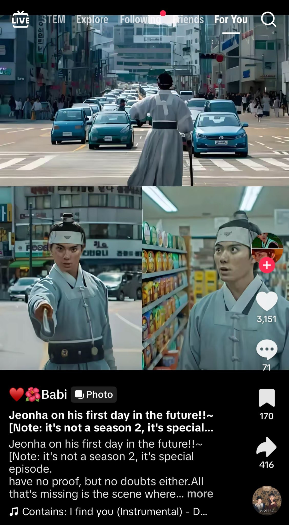Một số fan còn “thêu dệt” thêm một số tình tiết về những khoảnh khắc ban đầu của Lee Heon khi đến thời hiện đại. Khác với vẻ bảnh trai và tự tin khi gặp Ji Young ở nhà hàng trong phim, trong các đoạn video “cây nhà lá vườn” do fan làm, khi mới đến hiện tại “bạo chúa” có phần hoang mang trước nhà cửa san sát, siêu thị đầy ắp cũng như giao thông tấp nập nơi đây.
