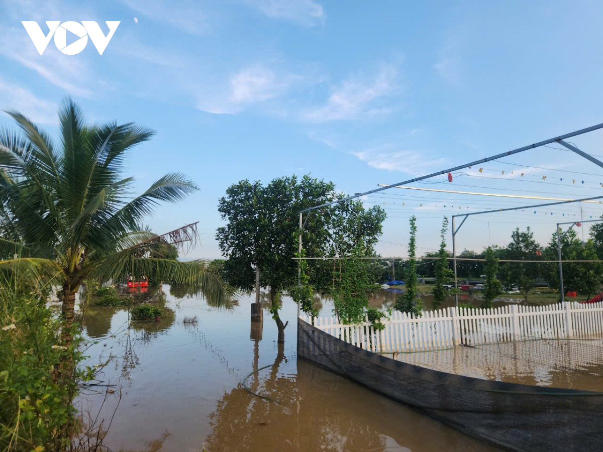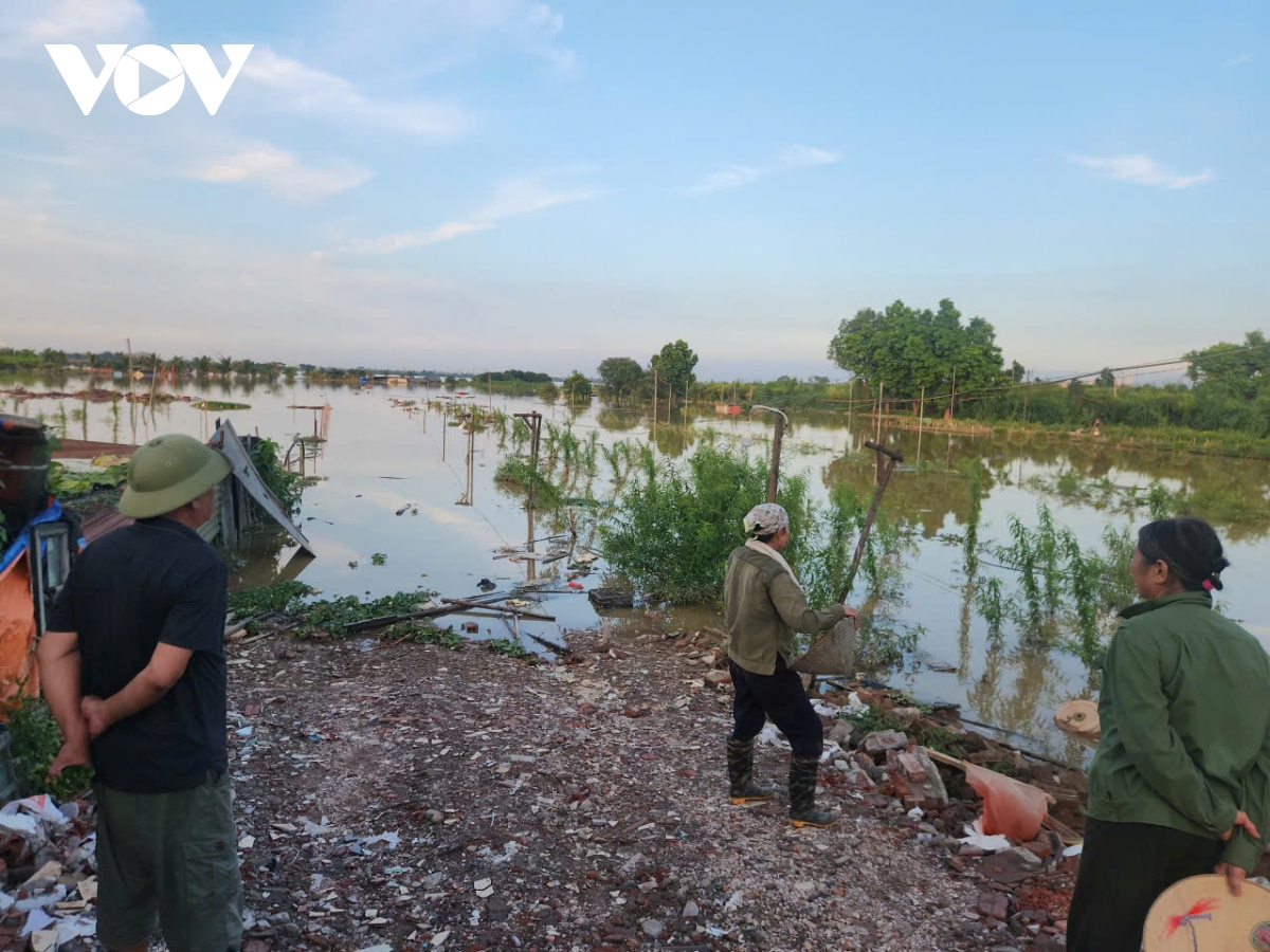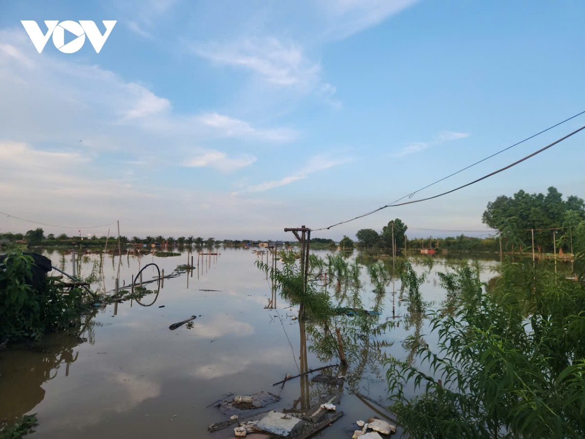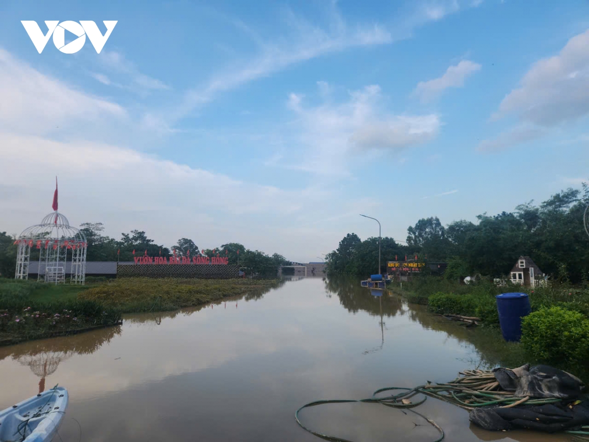Nước lũ sông Hồng, sông Đuống lên rất cao, nhấn chìm nhiều căn nhà, bãi bồi ven sông. Làng đào Nhật Tân, Phú Thượng lại chìm trong màu nước đục.