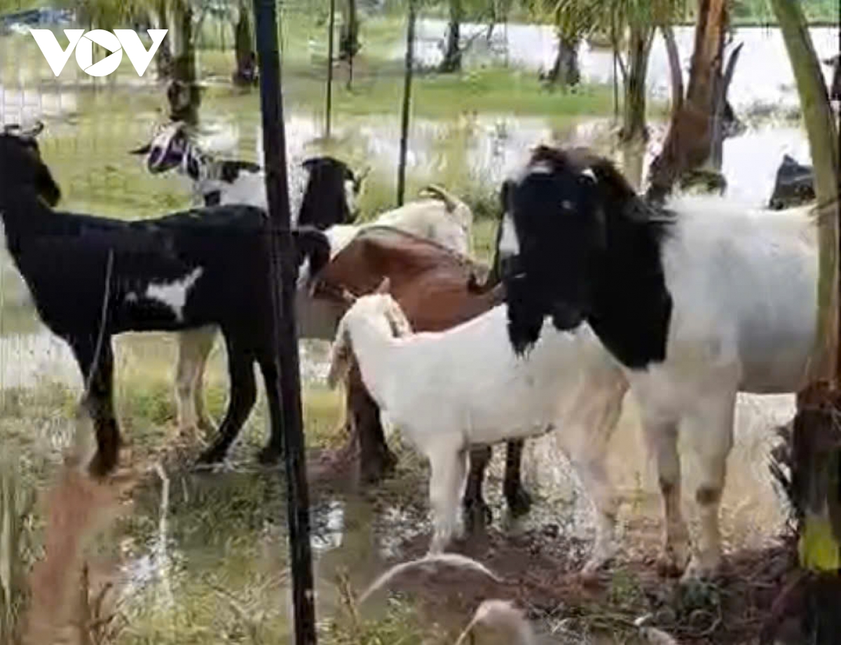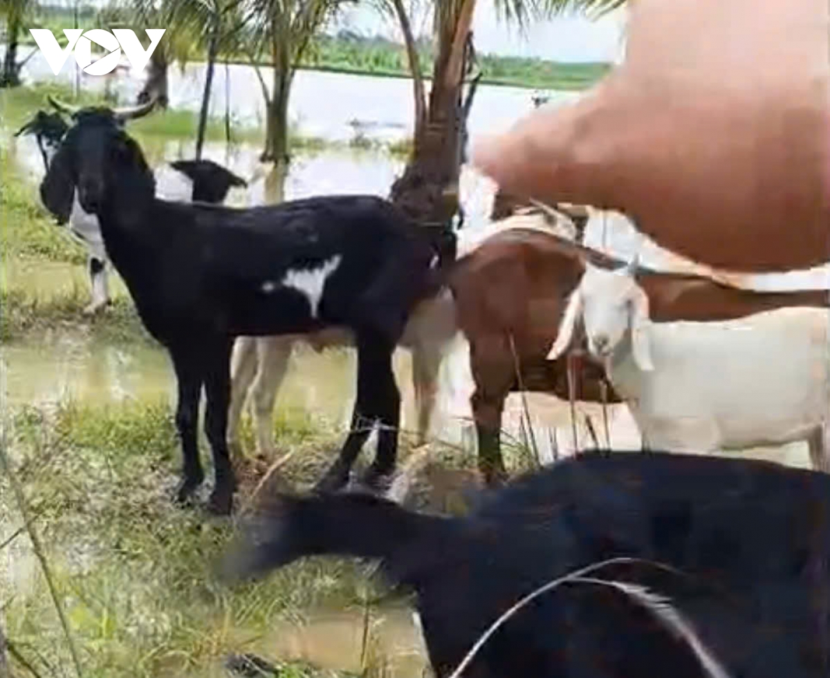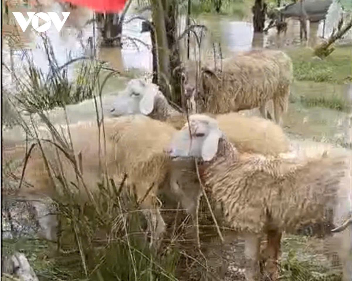 Nước ngập mênh mông khắp nơi, không có điểm cao nào cho đàn ngựa, dê trú chân.