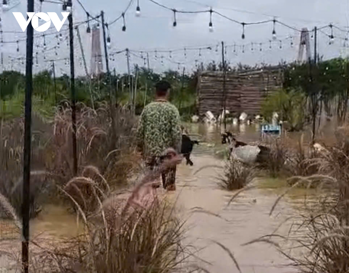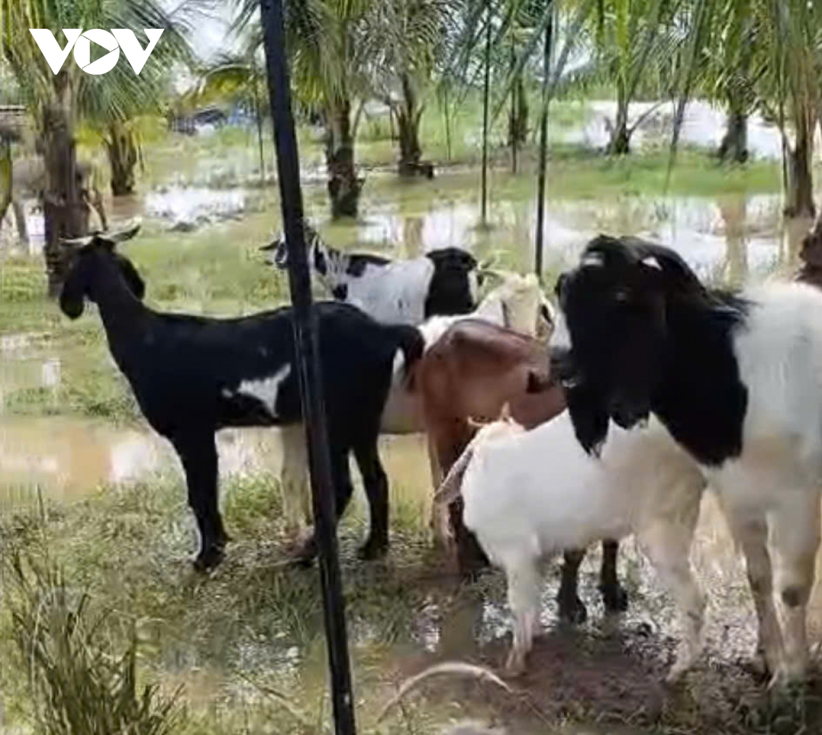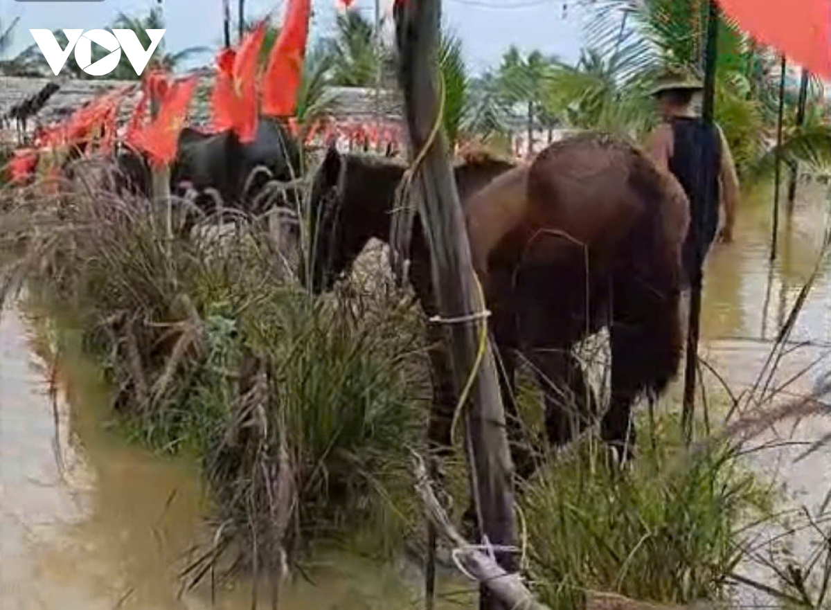 Nước ngập mênh mông khắp nơi, không có điểm cao nào cho đàn ngựa, dê trú chân.