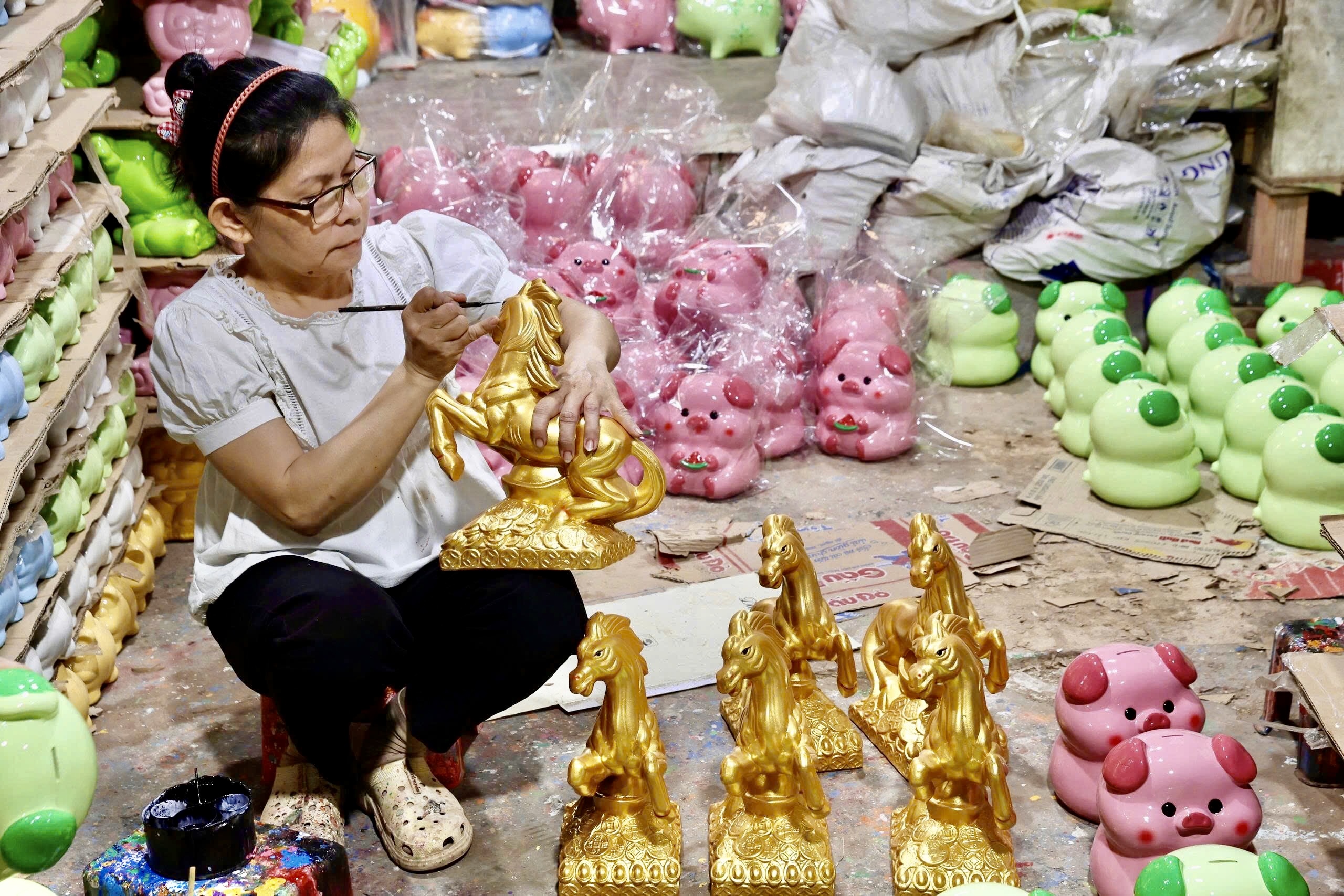 Những ngày cuối năm, xưởng sản xuất phục vụ thị trường Tết Bính Ngọ 2026 luôn rộn ràng. Các công đoạn diễn ra khẩn trương, từ tạo hình, nung đến sơn phủ, hoàn thiện, giúp những chú ngựa đất thêm sắc nét, sinh động.
