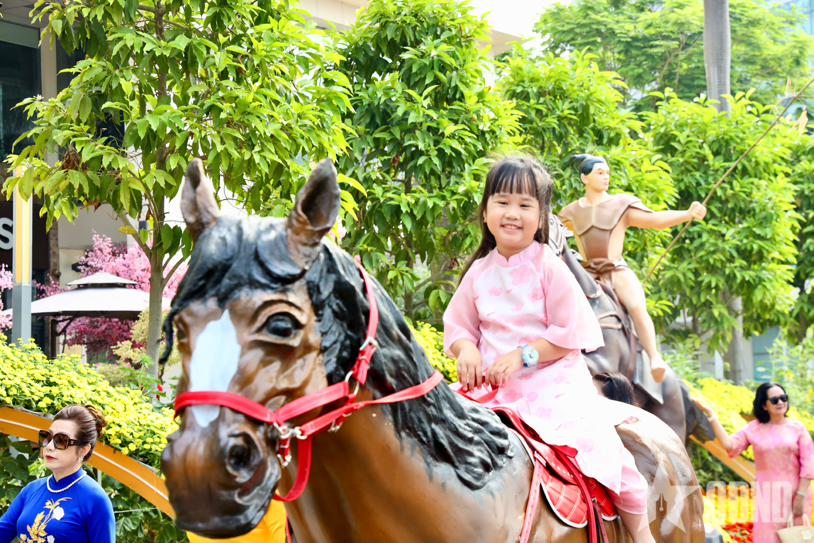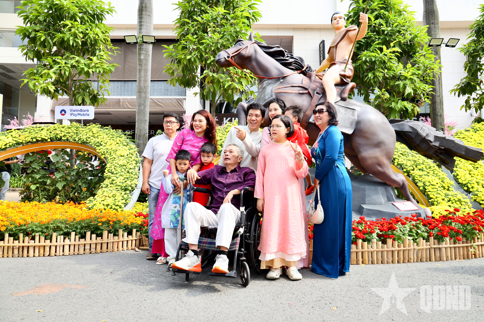 Trong chuỗi tiểu cảnh, cụm “Xuân khải hoàn - Rạng danh non sông” gây ấn tượng khi tái hiện hình tượng ngựa gắn với truyền thuyết Thánh Gióng. Các chi tiết được thi công công phu, thể hiện hào khí dân tộc, khẳng định sức mạnh nội tại và niềm tin vào vận hội mới của đất nước.