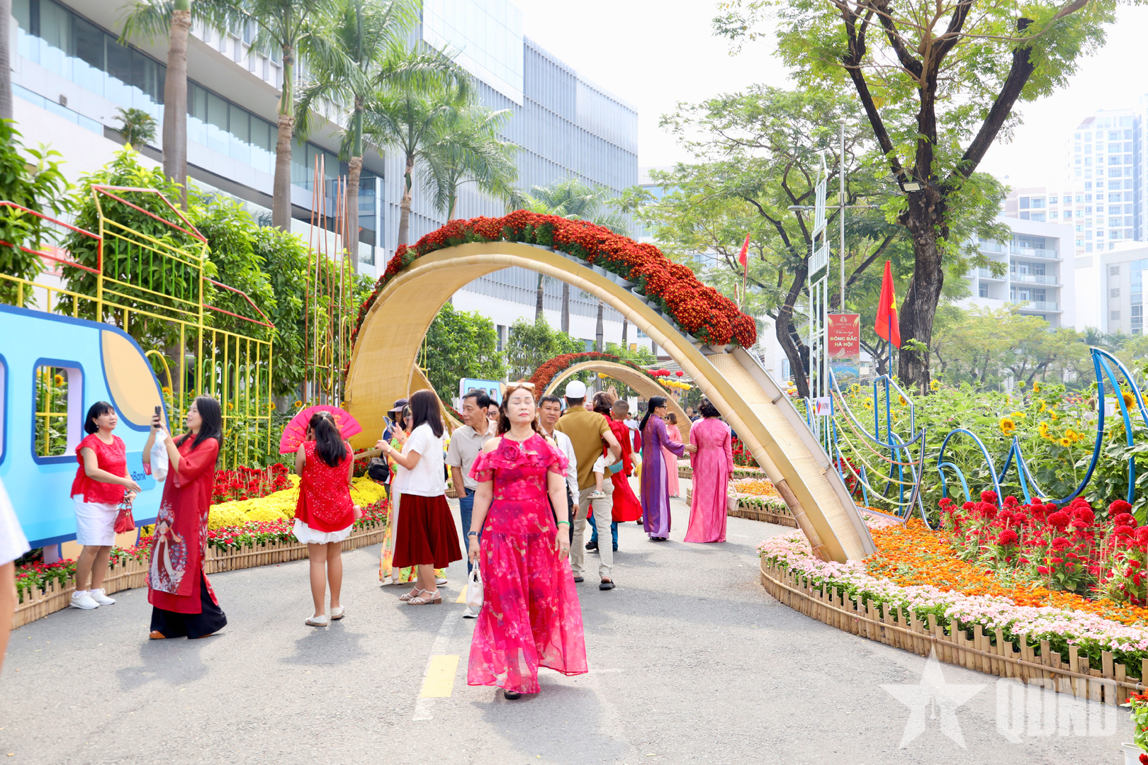 Không gian đường hoa được bố trí đan xen giữa các tiểu cảnh hoa kiểng, cụm trang trí nghệ thuật và các khu vực check-in, tạo nên sự hấp dẫn đối với du khách, nhất là giới trẻ.