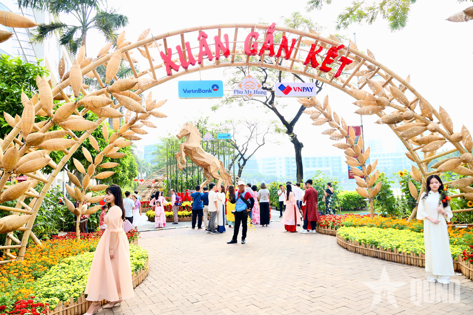 Với chủ đề “Xuân gắn kết”, toàn bộ không gian được tổ chức thành nhiều phân khu, kết hợp hài hòa giữa nghệ thuật tạo hình hiện đại và nét truyền thống của Tết cổ truyền dân tộc.