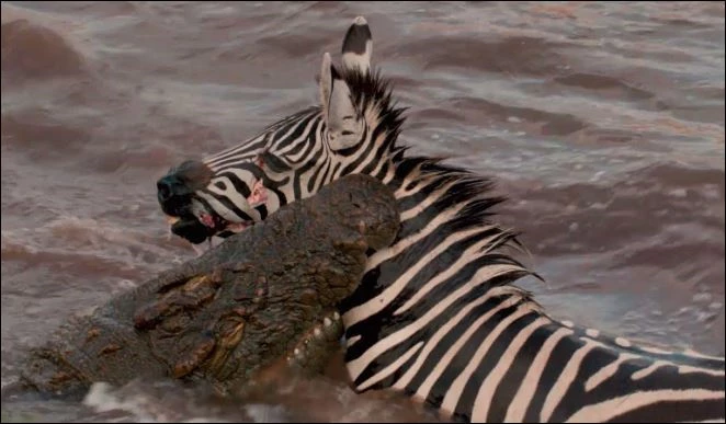 Khi đang vượt sông, chú ngựa vằn không may bị cá sấu tấn công và bị thương ở chân sau. Cộng thêm việc dòng sông chảy xiết đã khiến nó không thể di chuyển.