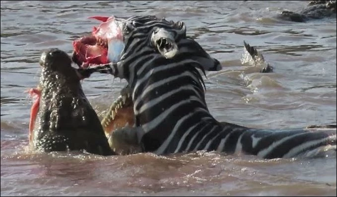 Tuy nhiên, vượt sông là công việc cực kỳ khó khăn khi bầy ngựa vằn phải đối mặt với rất nhiều cá sấu đói. Chỉ trong ít phút ngắn ngủi, một chú ngựa vằn xấu số đã bị bầy cá sấu tóm gọn và “xẻ thịt” ngay trên sông.