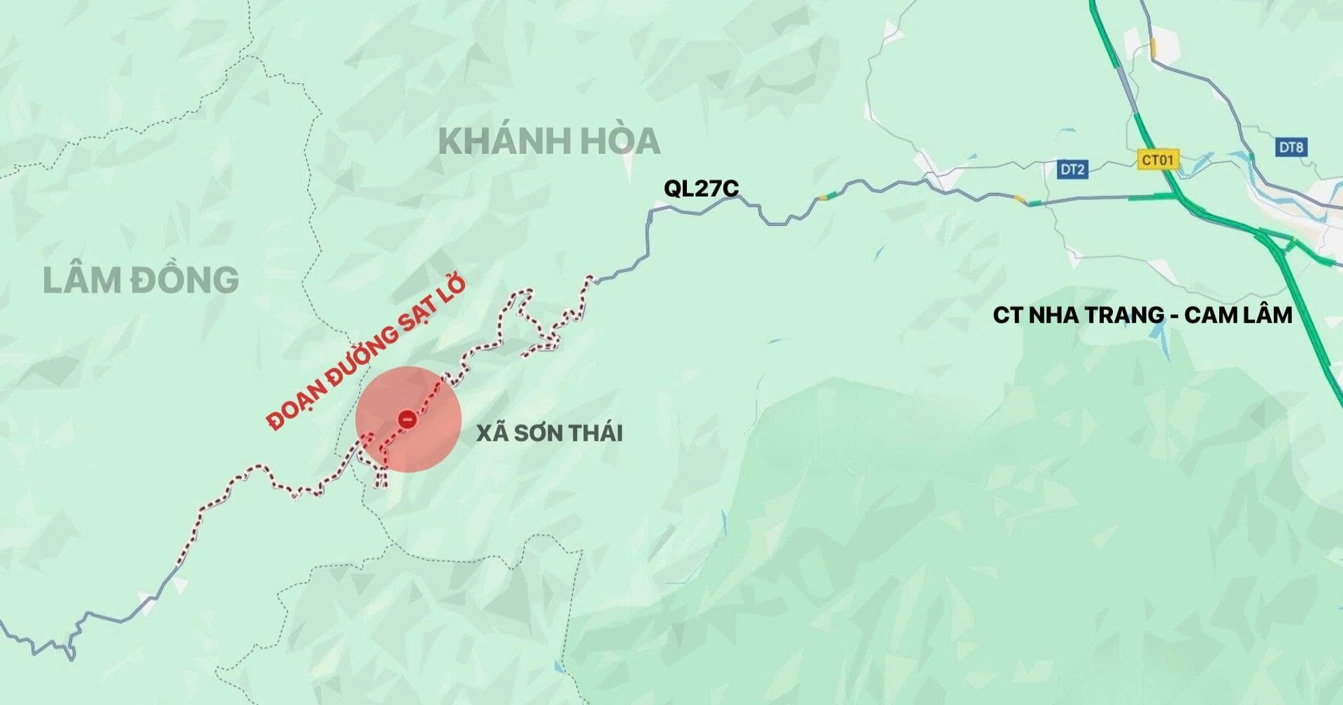 Các phương tiện tạm ngừng lưu thông trên đèo Khánh Lê nối Đà Lạt – Nha Trang do sạt lở