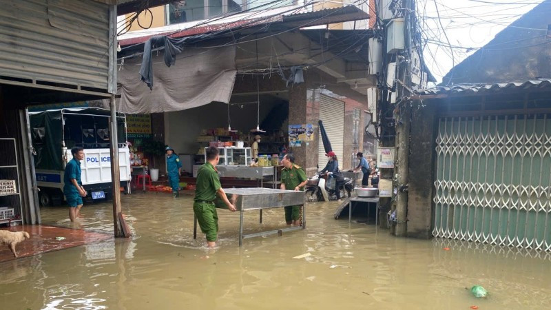 Công an xã Xuân Cẩm, tỉnh Bắc Ninh giúp nhân dân di dời tài sản đến nơi an toàn.