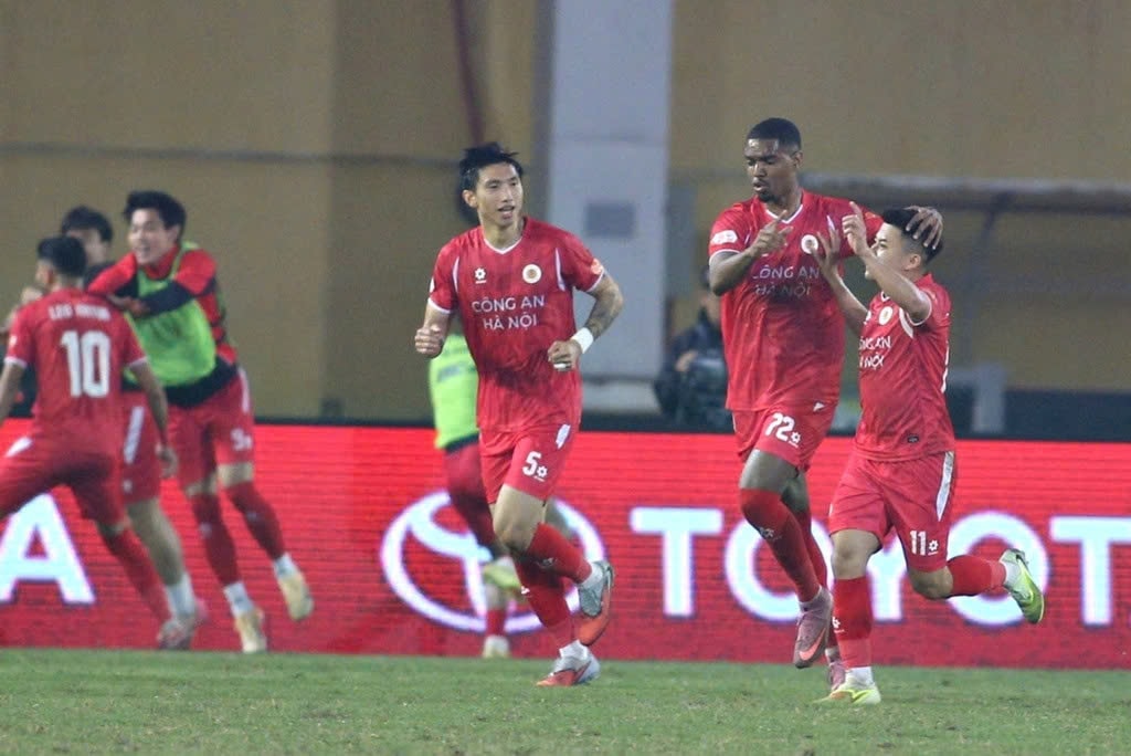 Thắng Ninh Bình, Công an Hà Nội vươn lên dẫn đầu bảng xếp hạng V.League. Ảnh Quyết Thắng