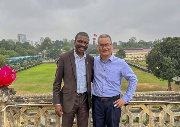 Tạ Quang Đông cùng ông Assomo Lazare - Giám đốc Trung tâm Di sản Thế giới thuộc UNESCO tại cổng Đoan Môn, Hoàng thành Thăng Long
