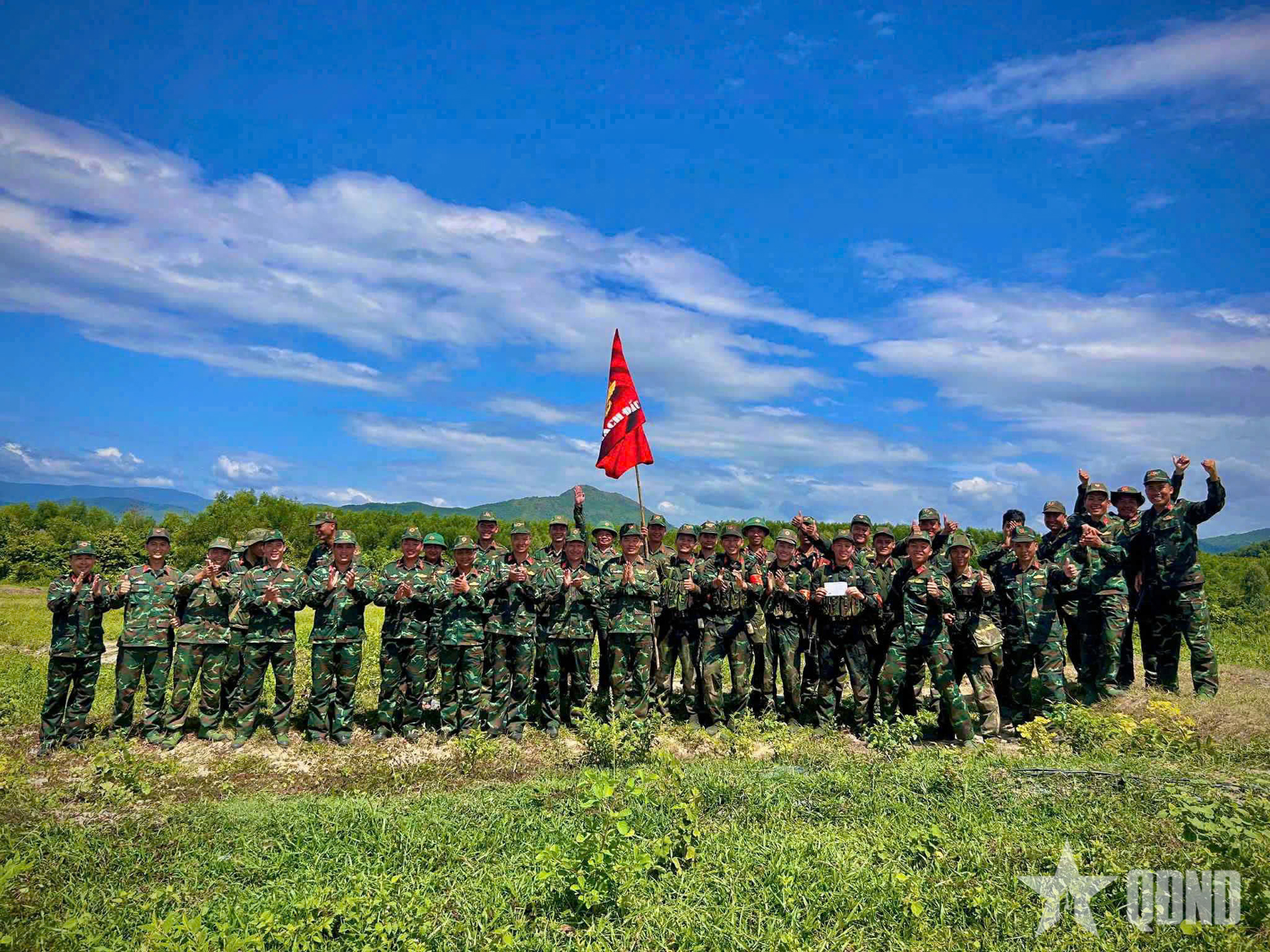 Đại úy Chu Văn Đông (ngoài cùng bên phải) cùng đội tuyển Quân đoàn 12 giành chức vô địch Quân khu số 1 - Thách đấu năm 2025.
