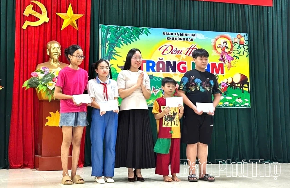 Đồng chí Cù Thị Thu Hằng dự đêm hội trăng rằm và trao quà cho các thiếu niên, nhi đồng xã Minh Đài.