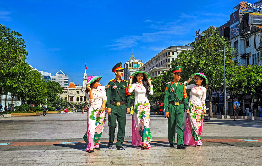 Nụ cười chiến thắng dưới chân thành cổ Quảng Trị. Ảnh: Đoàn Công Tính.