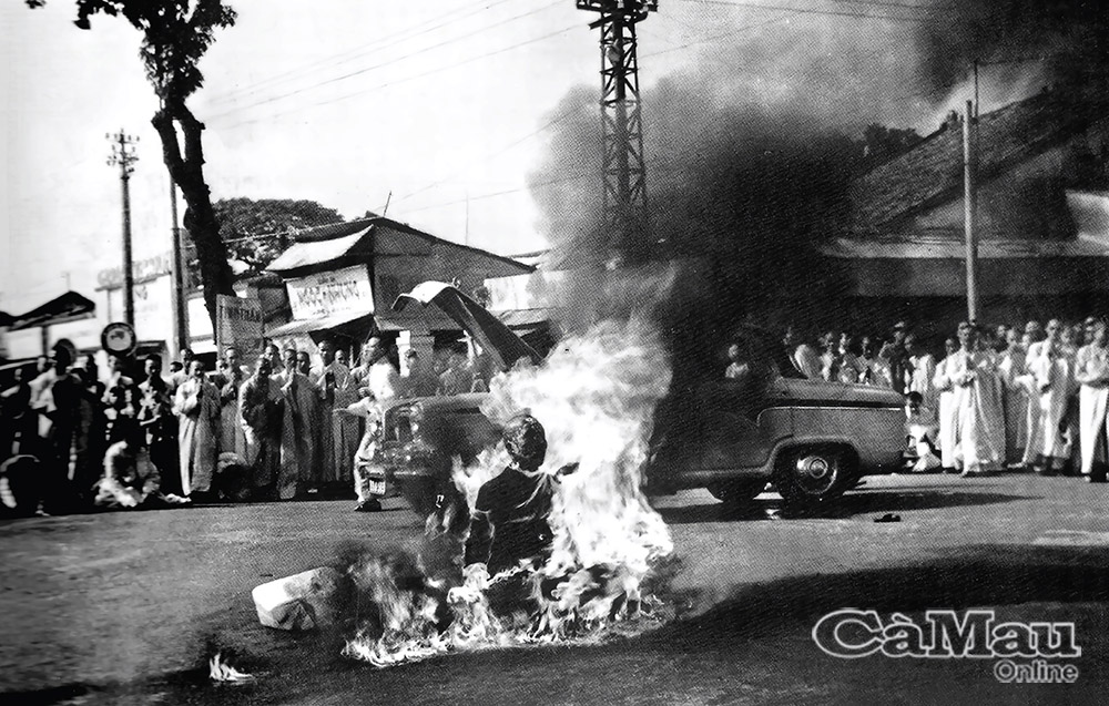 Hòa thượng Thích Quảng Đức tự thiêu. Ảnh: Nguyễn Văn Thông.