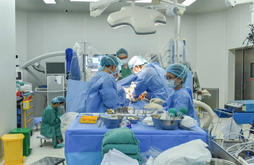 Ê-kíp Bệnh viện Quân y 175 thực hiện ca phẫu thuật ghép gan cho bệnh nhân được cháu ruột hiến gan. Ảnh: BVCC