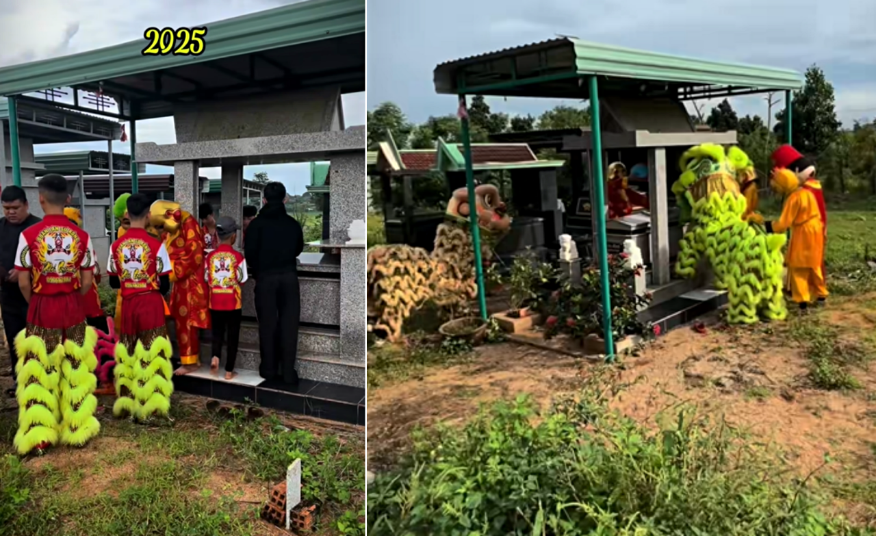 Những ngày qua, mạng xã hội lan truyền đoạn clip ghi lại cảnh một đoàn múa lân biểu diễn trước phần mộ của một cậu bé đoản mệnh. Sau khi kết thúc màn trình diễn, các thành viên trong đoàn không vội rời đi mà nán lại, chăm sóc mộ phần và trò chuyện cùng người quá cố.