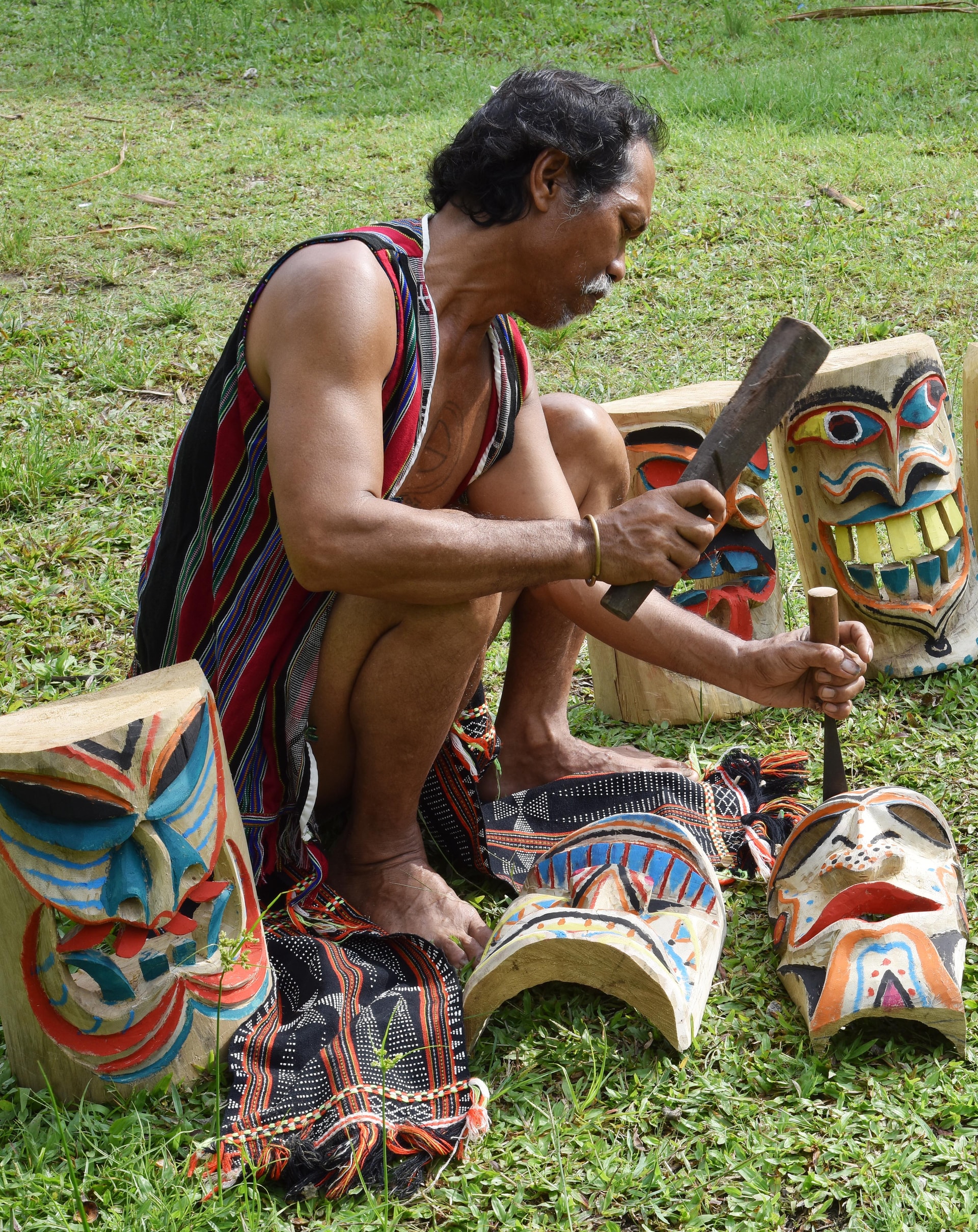 Nghệ nhân Briu Nga đang chế tác mặt nạ gỗ.
