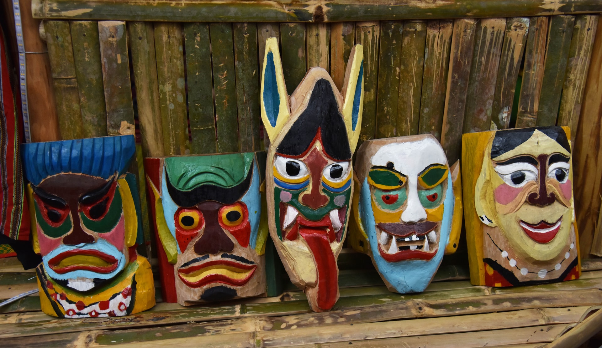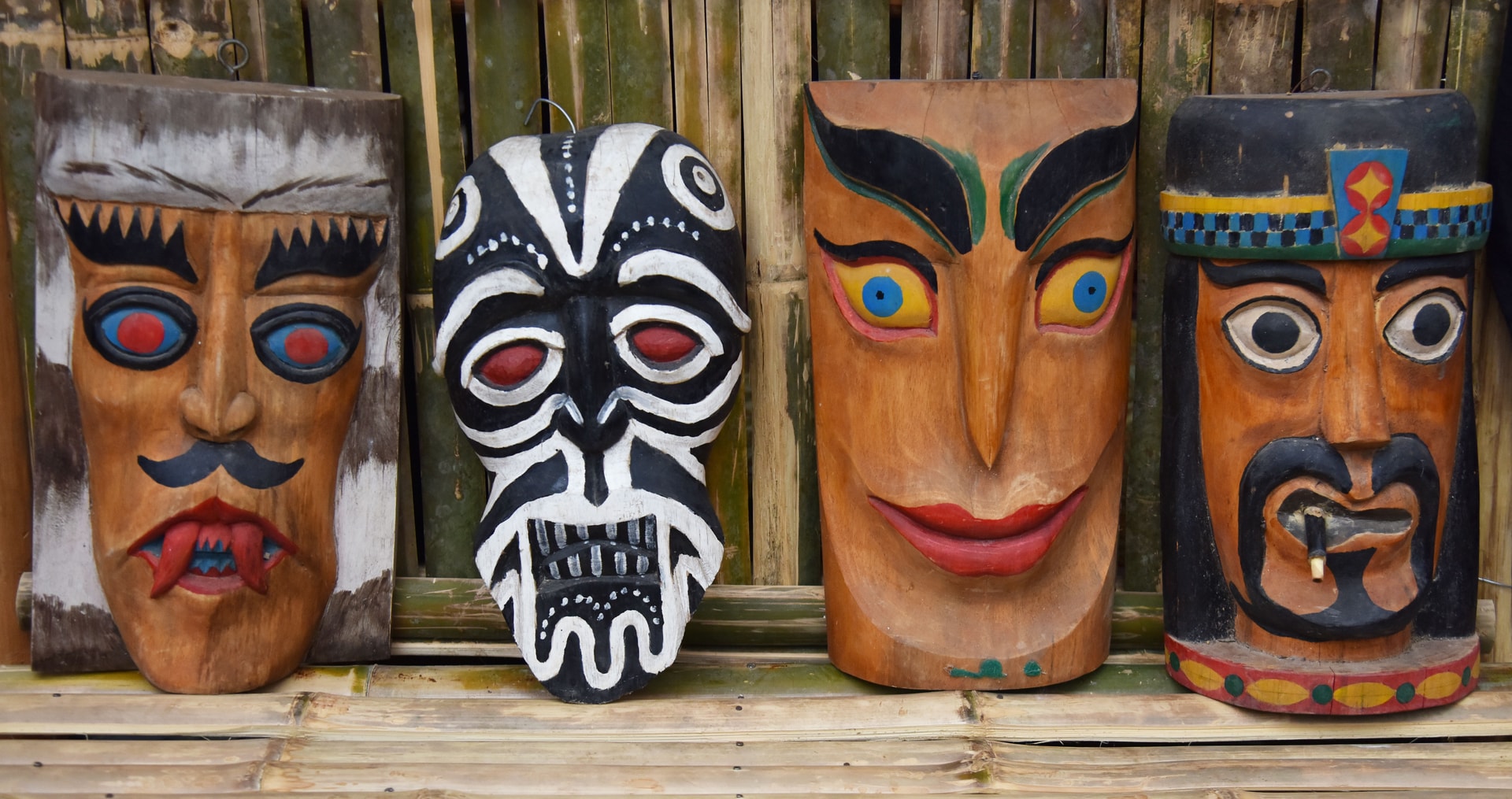Mặt nạ gỗ với hình ảnh biến thể kỳ thú.