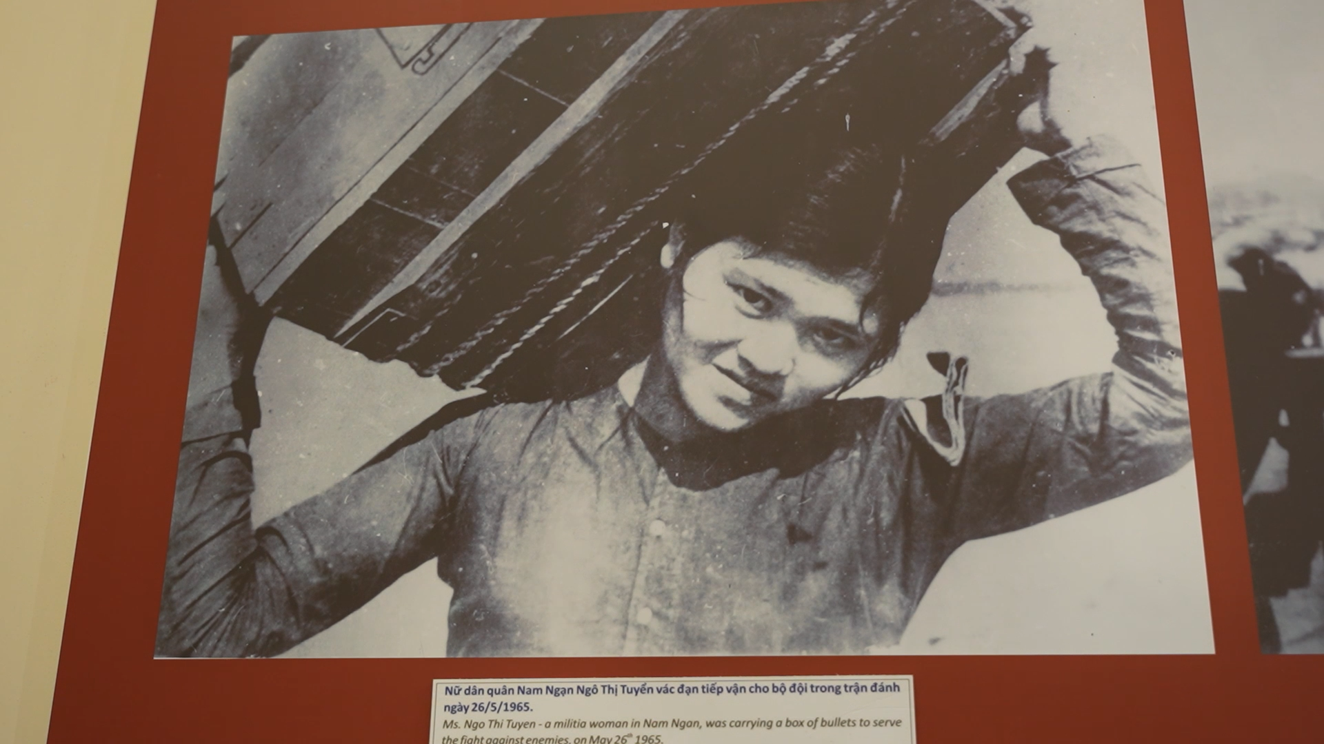 Tấm ảnh Anh hùng Lực lượng vũ trang nhân dân Ngô Thị Tuyển vác hai hòm đạn được trưng bày tại Bảo tàng tỉnh Thanh Hóa.