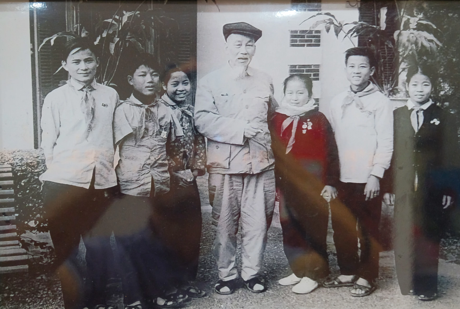Ông Đinh Ngọc Thỉ (ngoài cùng bên trái) và các thiếu niên chụp ảnh cùng Bác Hồ trong dịp dự Đại hội Anh hùng, Chiến sĩ thi đua chống Mỹ cứu nước lần thứ 4 tại Hà Nội - Ảnh: NVCC