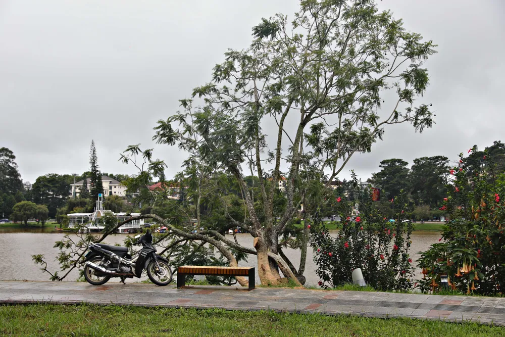 Diễn biến bất lợi của thời tiết làm một thân lớn nhất của cây phượng tím hàng chục năm tuổi bên bờ hồ Xuân Hương bị gãy, ngã rạp xuống đất. May mắn phần thân phượng tím đổ về hướng bờ hồ, không gây thiệt hại về người và tài sản.