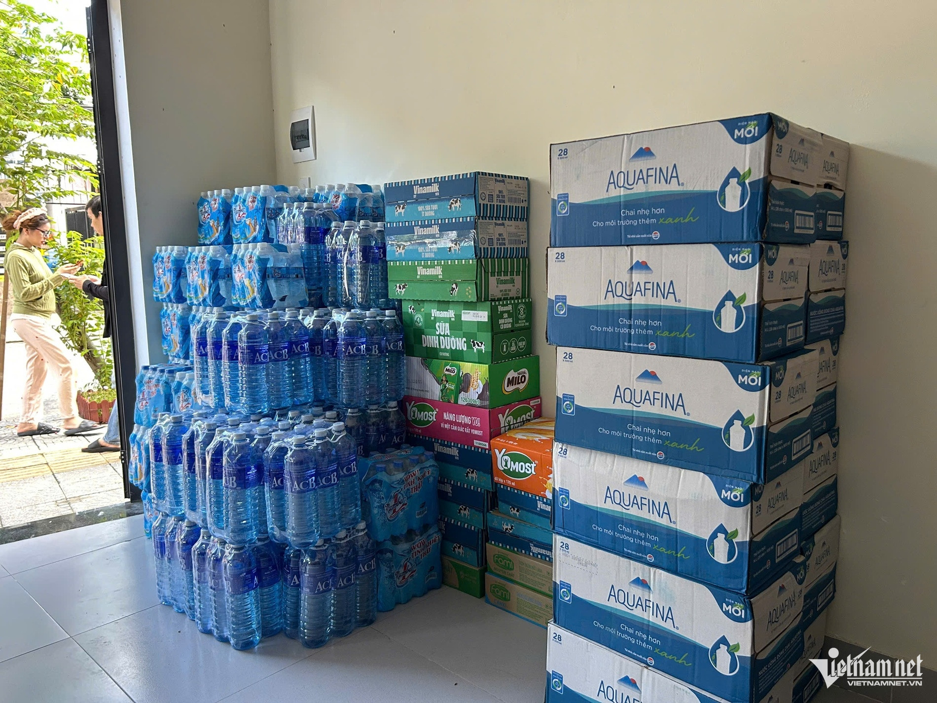 Tại điểm tiếp nhận trên đường Tôn Đức Thắng, nhiều loại nhu yếu phẩm như sữa, mì tôm, nước uống... được người dân mang đến quyên góp