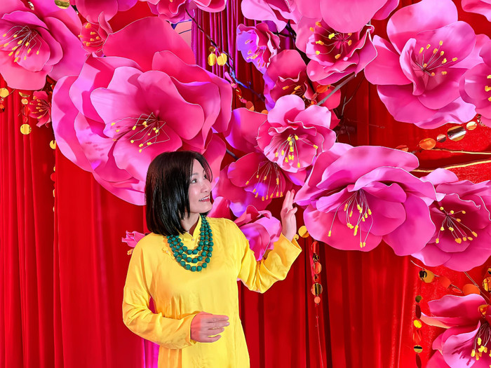 Mới đây, Hồng Đào đăng tải loạt khoảnh khắc diện áo dài truyền thống, đón Tết tại Mỹ bên gia đình và bạn bè thân thiết. Kèm theo hình ảnh, nữ nghệ sĩ hài hước viết: “Em đi du xuân. Nghe đồn Tết Bính Ngọ chị em mình đầu tư tiền sắm áo dài mạnh hơn tiền mua váy đi đánh pickleball. Còn em thì... Tết nay em không cần may áo mới vì đã có áo cũ mặc rồi, kiểu... vintage limited edition. Tết tiết kiệm chút đỉnh nhưng Xuân là phải rực rỡ”.