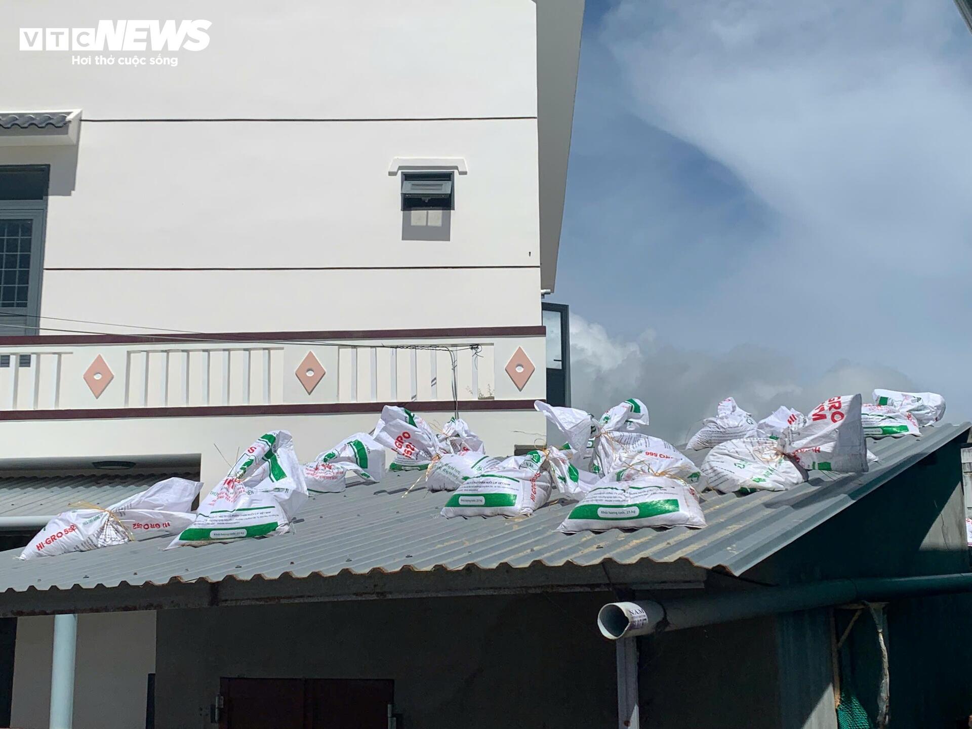 Người dân khu vực xã Ô Loan lấy bao cát để chằng nhà cửa.