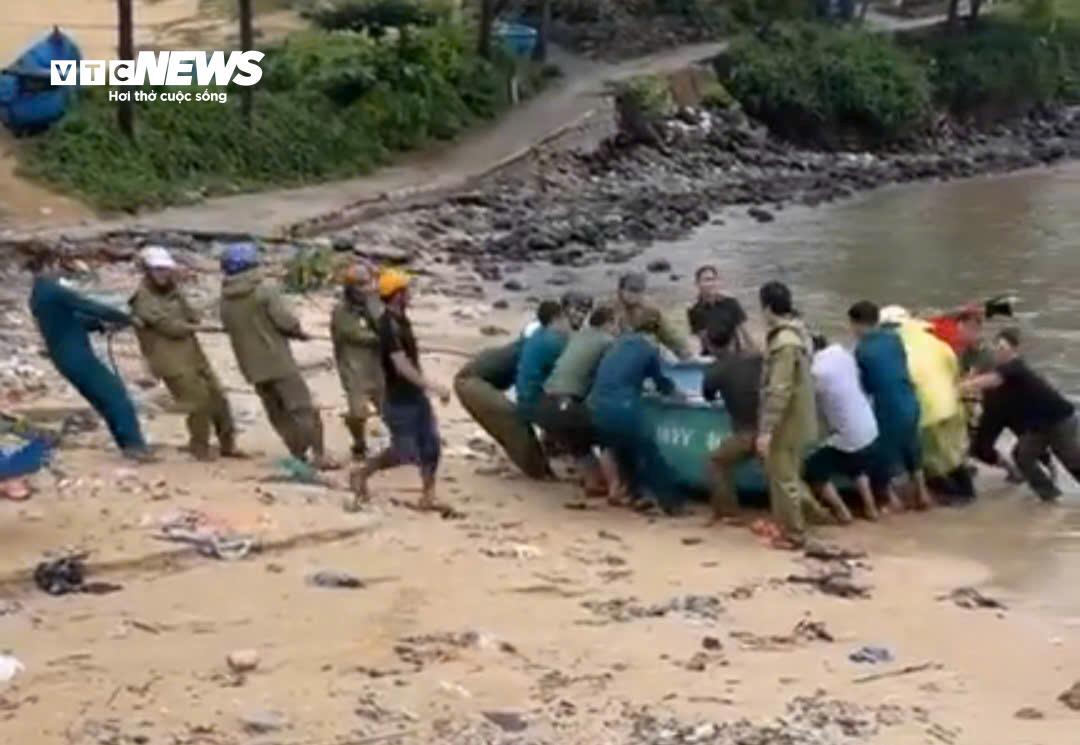 Chính quyền địa phương giúp người dân kéo thúng, thuyền lên bờ tránh bão.