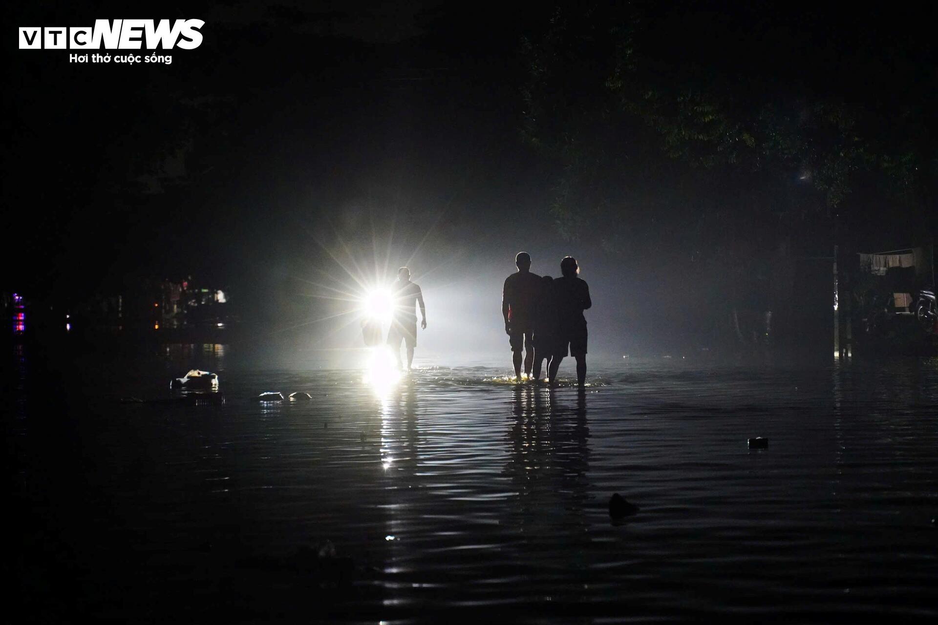 Khuya 12/10, khi nước lũ trên sông Thương bắt đầu rút, nhiều hộ dân ở phường Đa Mai (TP Bắc Ninh) trở về nhà. Cả khu vực vẫn bị cắt điện, chìm trong màu đen đặc quánh. Người dân dò dẫm từng bước trong bùn, chỉ dựa vào ánh đèn pin le lói để trở về nhà sau lũ.
