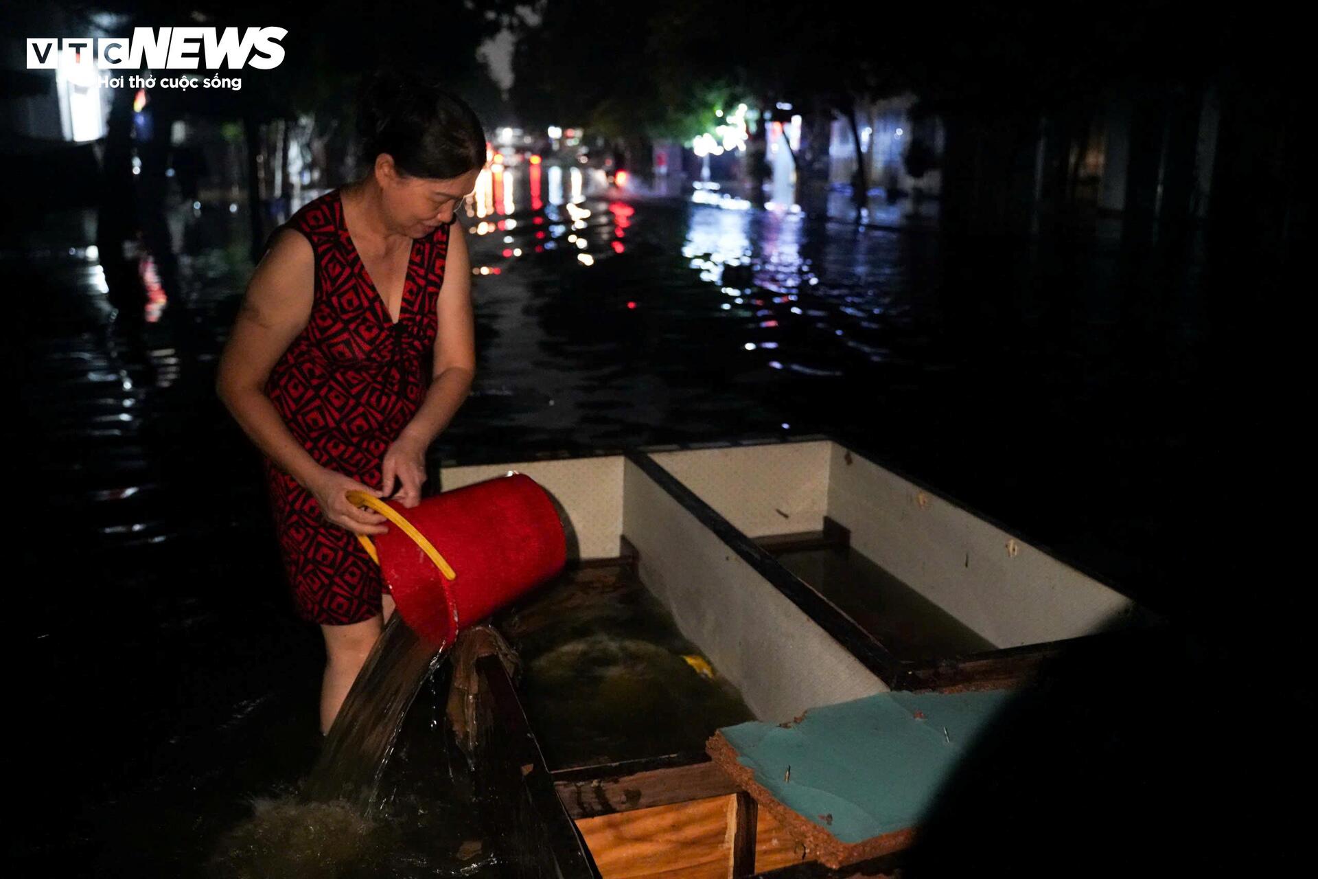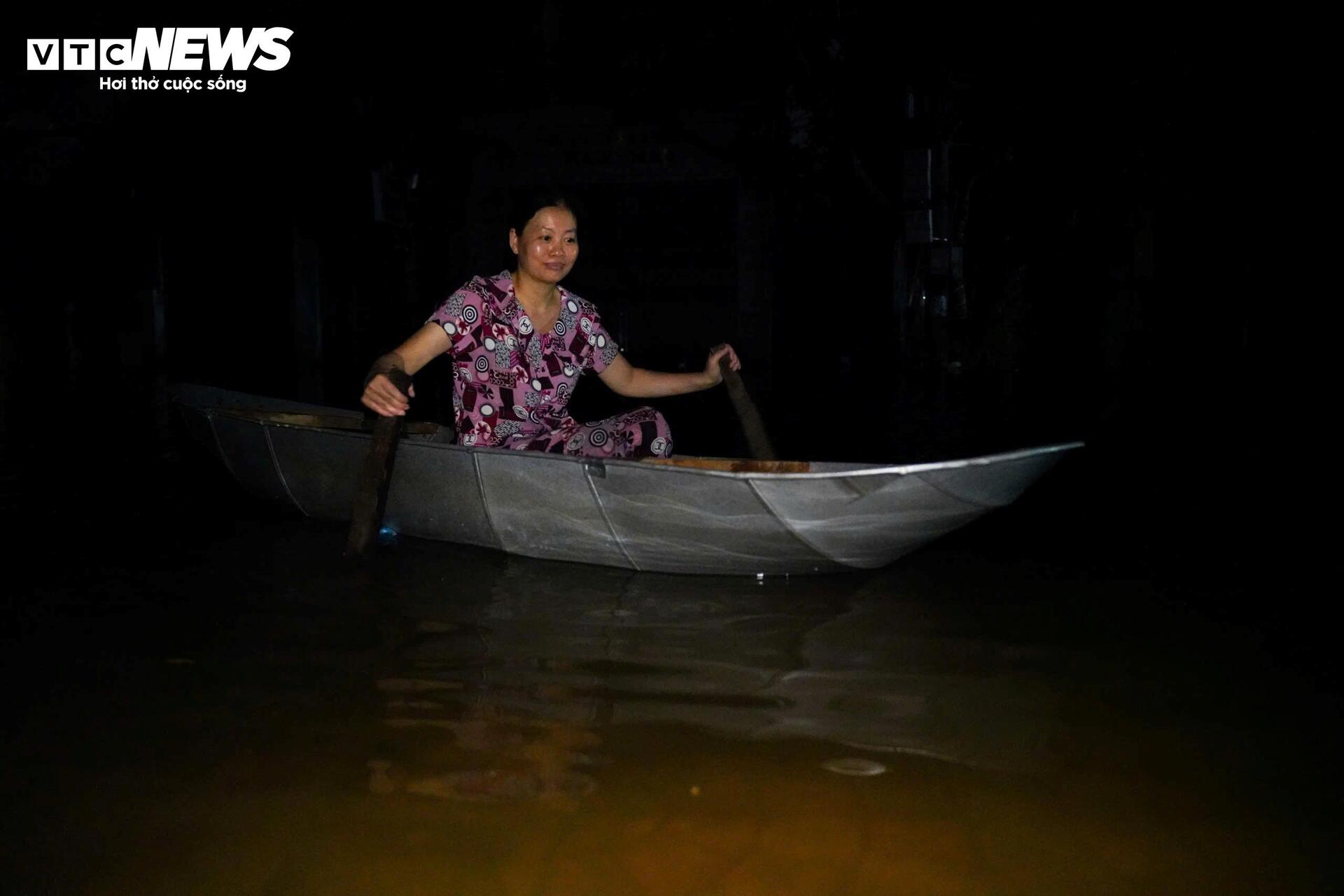 Khi tuyến đường chính và các ngõ nhỏ vẫn còn ngập sâu, thuyền trở thành phương tiện di chuyển duy nhất, giúp người dân qua lại và vận chuyển đồ đạc.