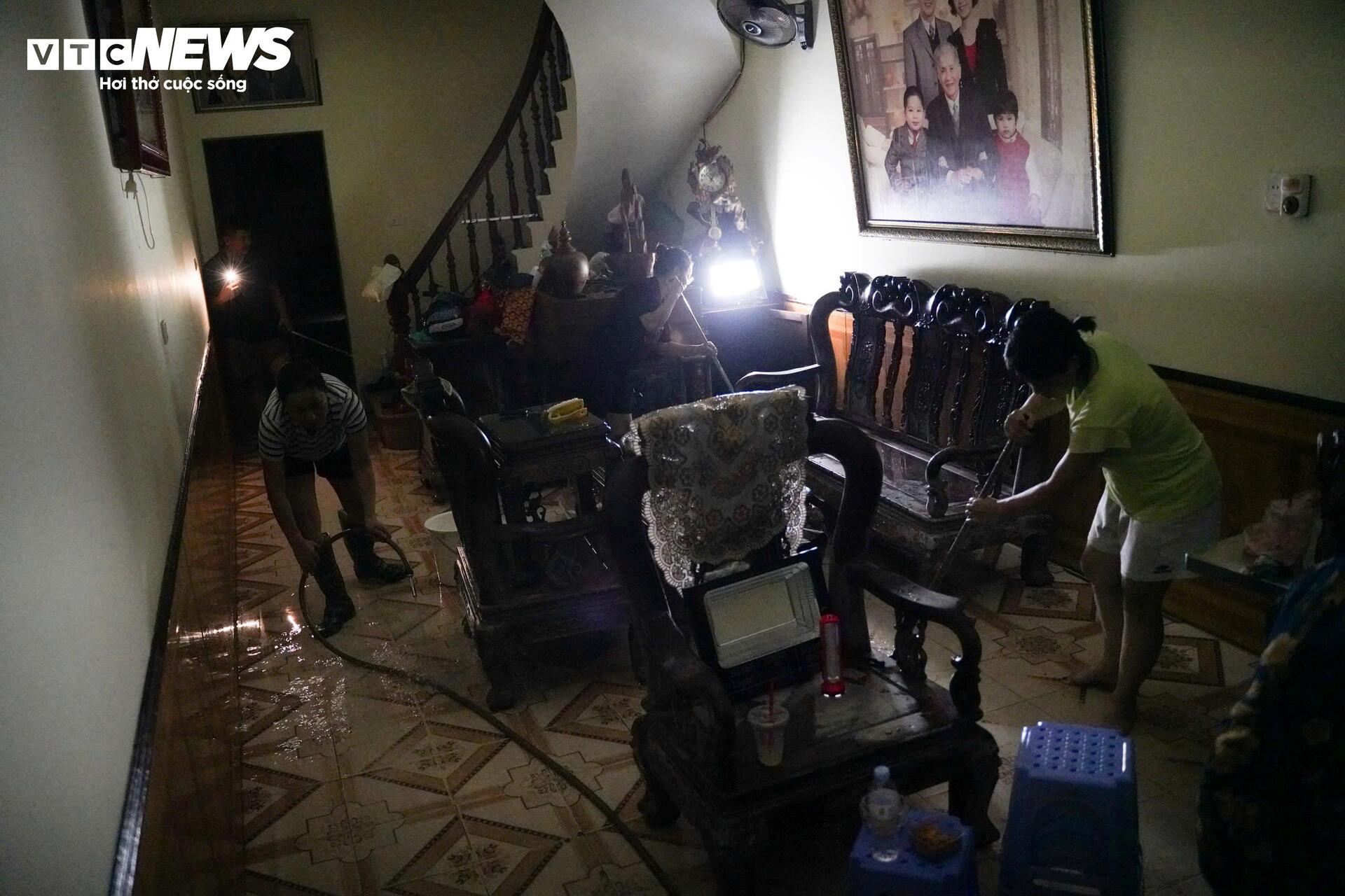 Nước rút để lại lớp bùn dày đặc cùng rác thải ngổn ngang trong mỗi ngôi nhà, khiến việc dọn dẹp trở nên vô cùng khó khăn. Nhiều gia đình phải nhờ tới sự giúp sức của người thân, họ hàng để cùng xử lý khối lượng công việc chất chồng ngay trong đêm.