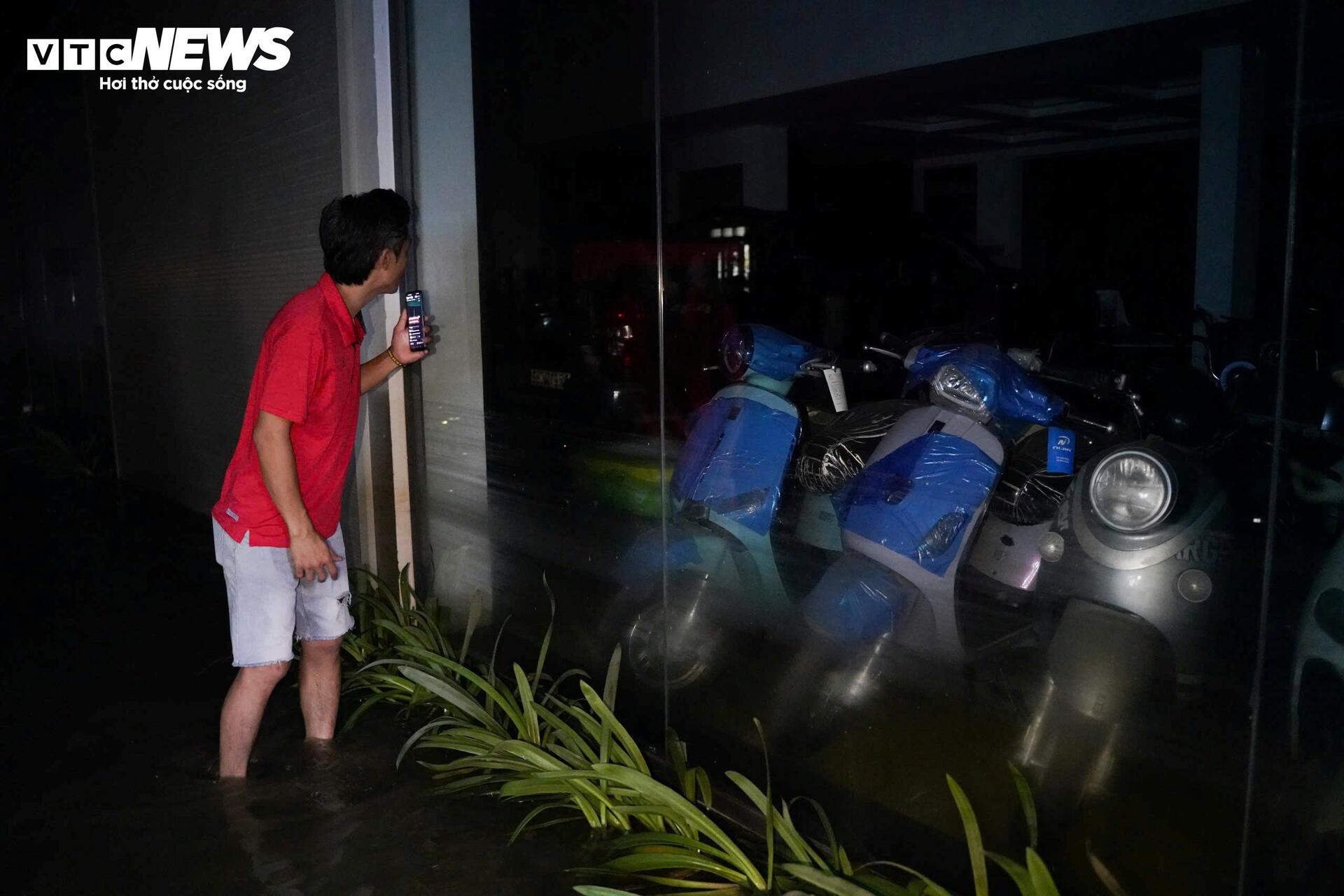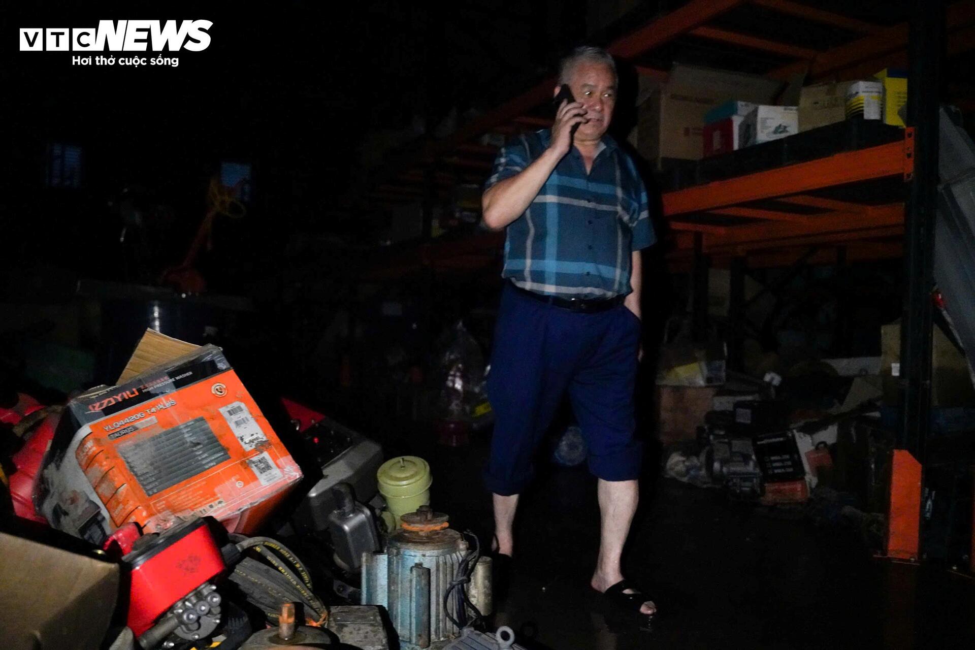 Giữa kho hàng ngổn ngang sau lũ, ông Đặng Trần Lãm, chủ cơ sở sản xuất máy nông nghiệp, máy xây dựng và xe điện, gọi điện báo tình hình cho gia đình. Ông cho biết, trận lũ lần này khiến cơ sở của ông thiệt hại ước tính khoảng 500 triệu đồng. "Tối nay tôi sang mở kho hàng mà thấy đau lòng quá. Nước lũ dâng lên quá nhanh, máy móc rất nặng nên không kịp di chuyển", ông thở dài.