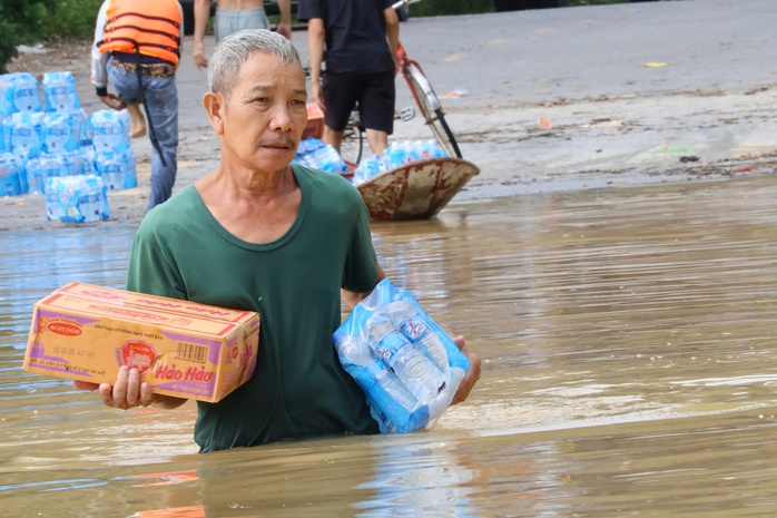 Ông Nguyên lội nước ra điểm nhận hàng cứu trợ