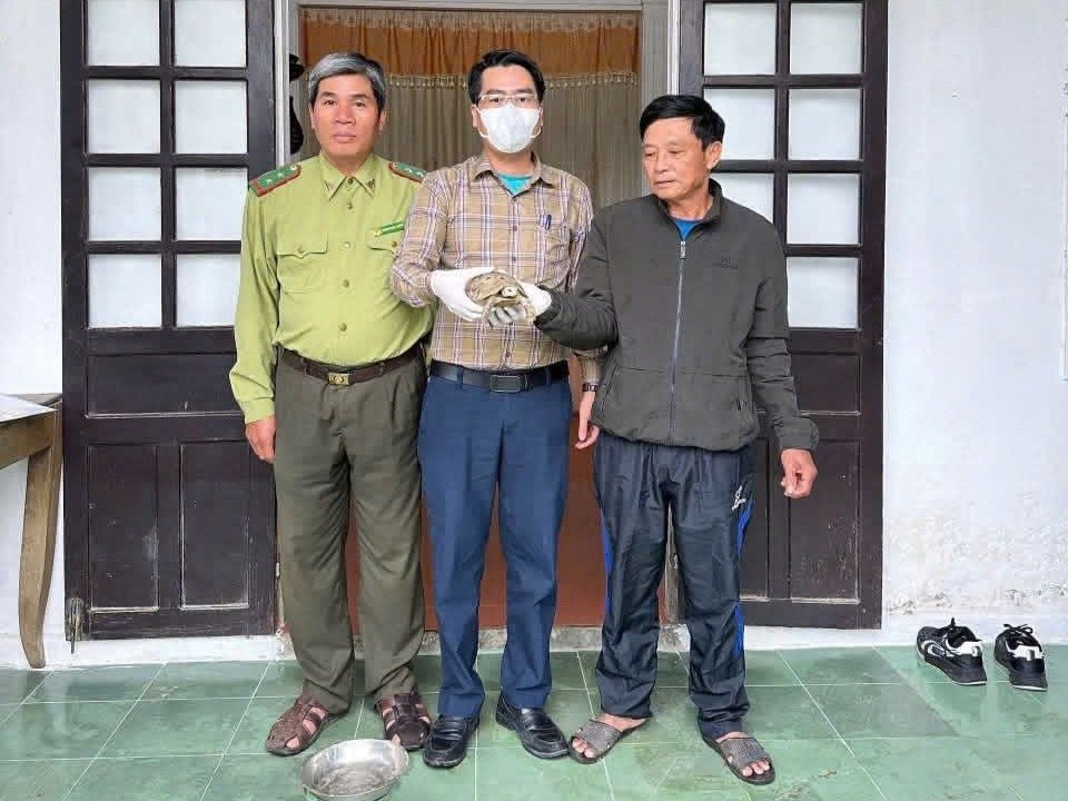 Cụ thể, tại phường Vỹ Dạ, ông Lê Văn Cam (trú tại kiệt 7 Công Lương) đã chủ động liên hệ với cơ quan chức năng để bàn giao 1 cá thể rùa núi vàng (Indotestudo elongata).