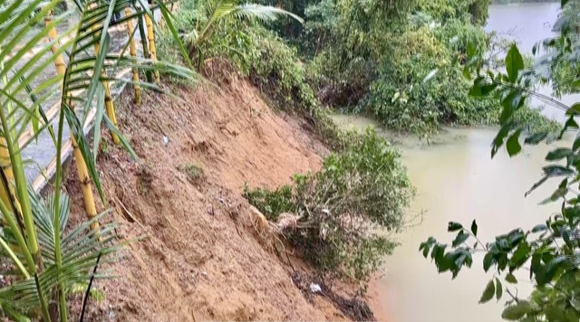 Tuyến đường liên thôn vào tổ dân phố Na, xã Phong Nha hiện bị sạt bờ bao và xuất hiện một số vị trí nứt gãy. Đây là tuyến đường có lượng lớn người lưu thông, đặc biệt là học sinh.