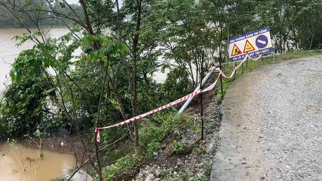"Nước lũ từ thượng nguồn sông Son đổ về gây xói lở bờ kè, con đường xuất hiện tình trạng sạt lở cách đây mấy ngày. Chúng tôi mong chính quyền, cơ quan chức năng sớm có phương án xử lý đảm bảo an toàn", ông Cao Xuân Tiến (trú xã Phong Nha) cho biết.