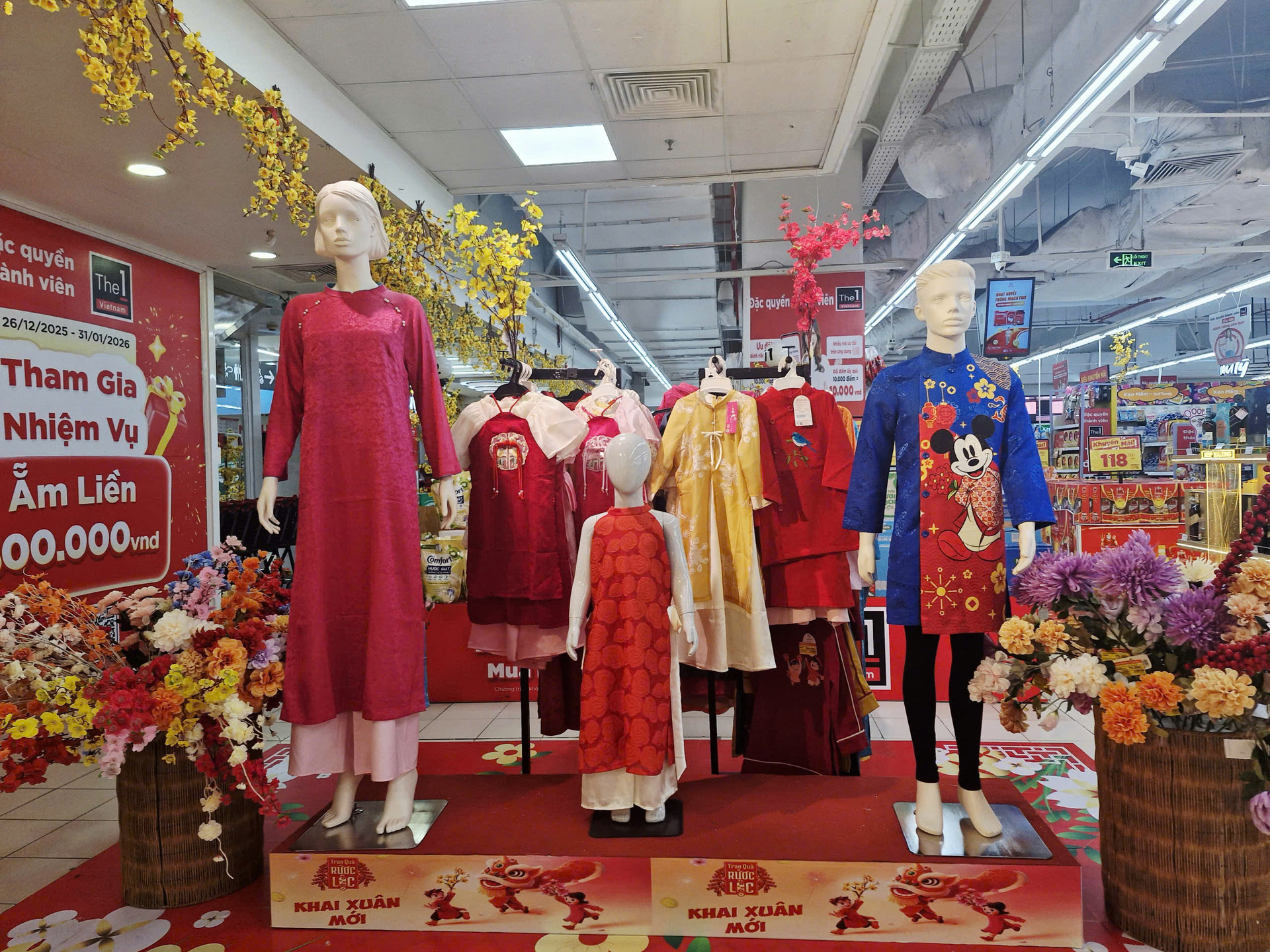 Khu vực thời trang của siêu thị GO! cũng rực rỡ khuyến mãi với áo dài Tết từ 299.000 đồng.