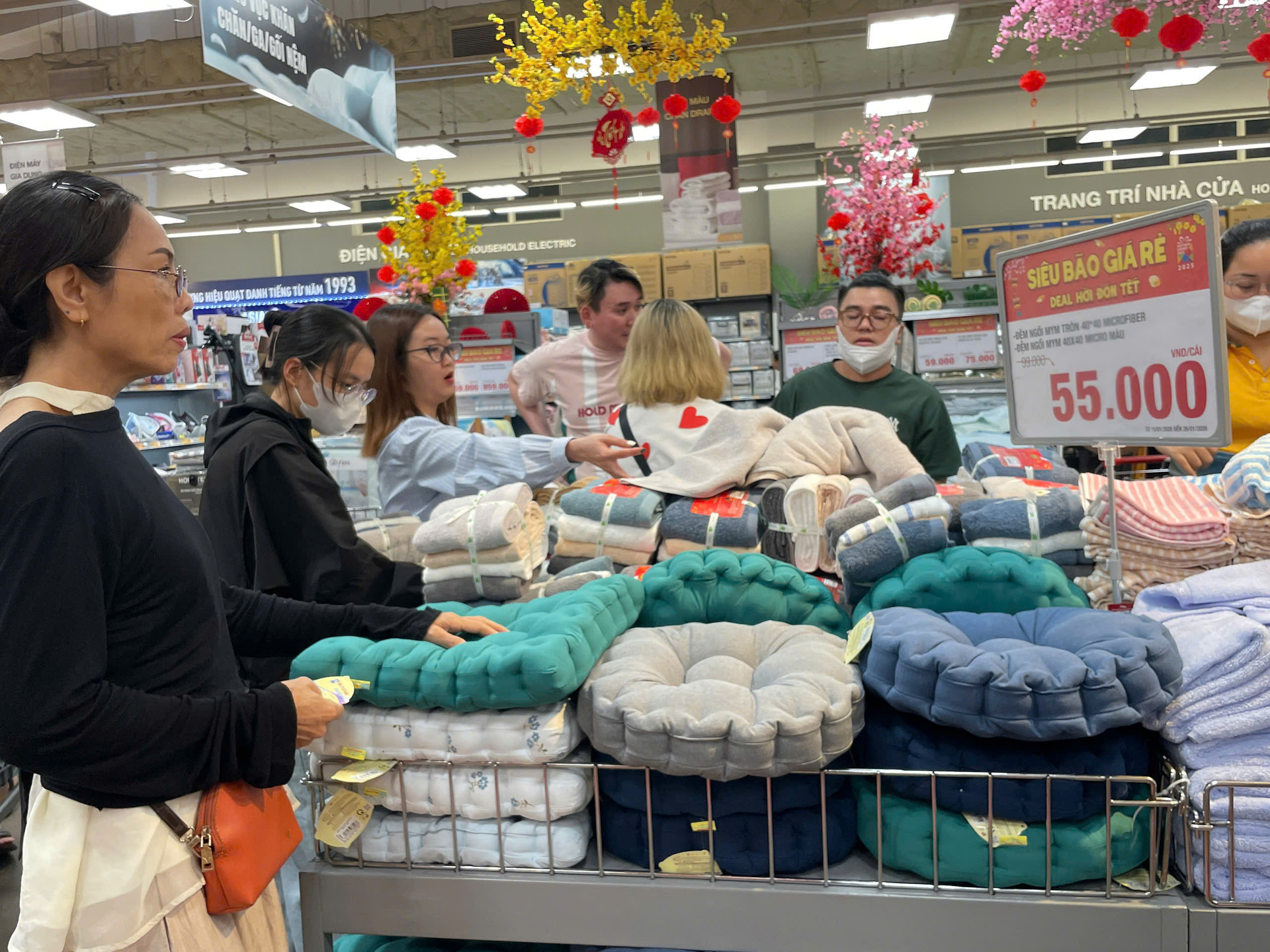 Những ngày này, không khí Tết rộn ràng tại các siêu thị, trung tâm mua sắm. Để kích cầu sức mua dịp Tết, các nhà bán lẻ lớn đang triển khai cùng lúc nhiều chương trình giảm giá, khuyến mãi, quà tặng... tập trung vào nhóm hàng đang được mua nhiều nhất là thực phẩm, hàng tiêu dùng nhanh, đồ dùng gia đình, hóa mỹ phẩm...