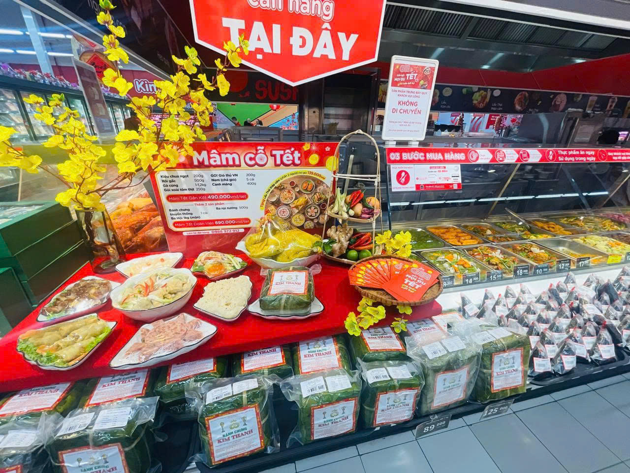 Không chỉ có các sản phẩm thiết yếu phục vụ tiêu dùng dịp Tết, năm nay, các nhà bán lẻ cũng nhanh nhạy đáp ứng nhu cầu mua sắm cho nhóm khách hàng bận rộn bằng thiết kế các mâm cỗ đầy đủ, hoàn thiện phục vụ cúng ông Công ông Táo, Tất Niên... Mỗi mâm cỗ cúng có đầy đủ các món ăn truyền thống theo nhu cầu khách từng vùng.