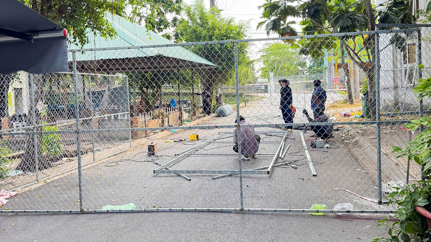 Người dân ở khu dân cư Hoàng Quân (phường Cái Răng, TP Cần Thơ) bức xúc khi thấy nhiều người tiến hành rào chắn đường số 7. Ảnh: CHÂU ANH