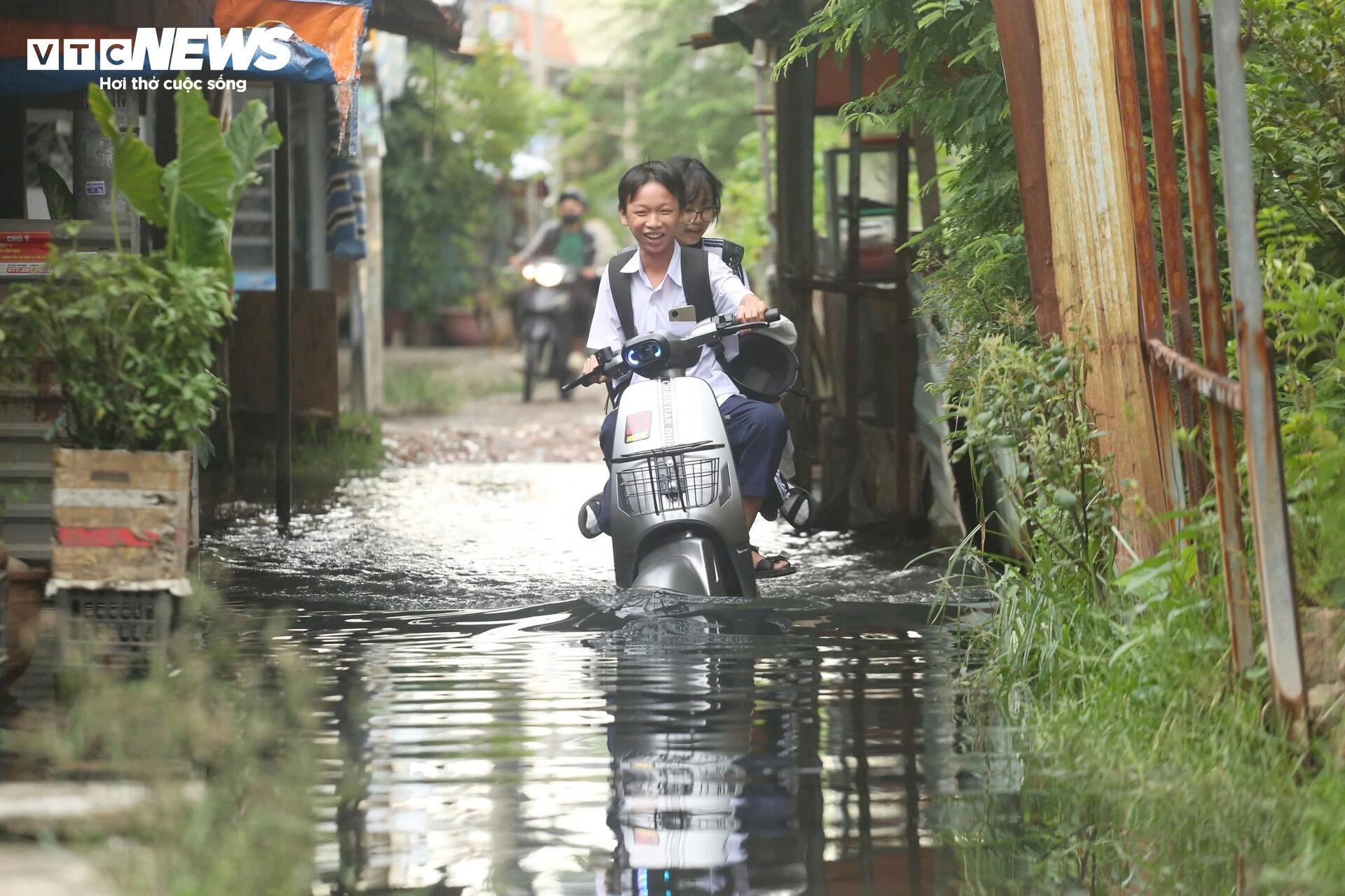 Trên tuyến đường hẹp, học sinh tan học phải dắt xe bì bõm, người đi làm mang thêm quần áo để thay khi đến công ty. “Mưa lớn hay triều cường là y như rằng ngập. Mỗi lần như vậy đi làm muộn, người ướt nhẹp từ đầu tới chân. Có hôm nước dâng cao gần nửa bánh xe, xe chết máy phải dắt bộ cả trăm mét”, chị Nguyễn Hà Hân – nhân viên văn phòng cho biết.